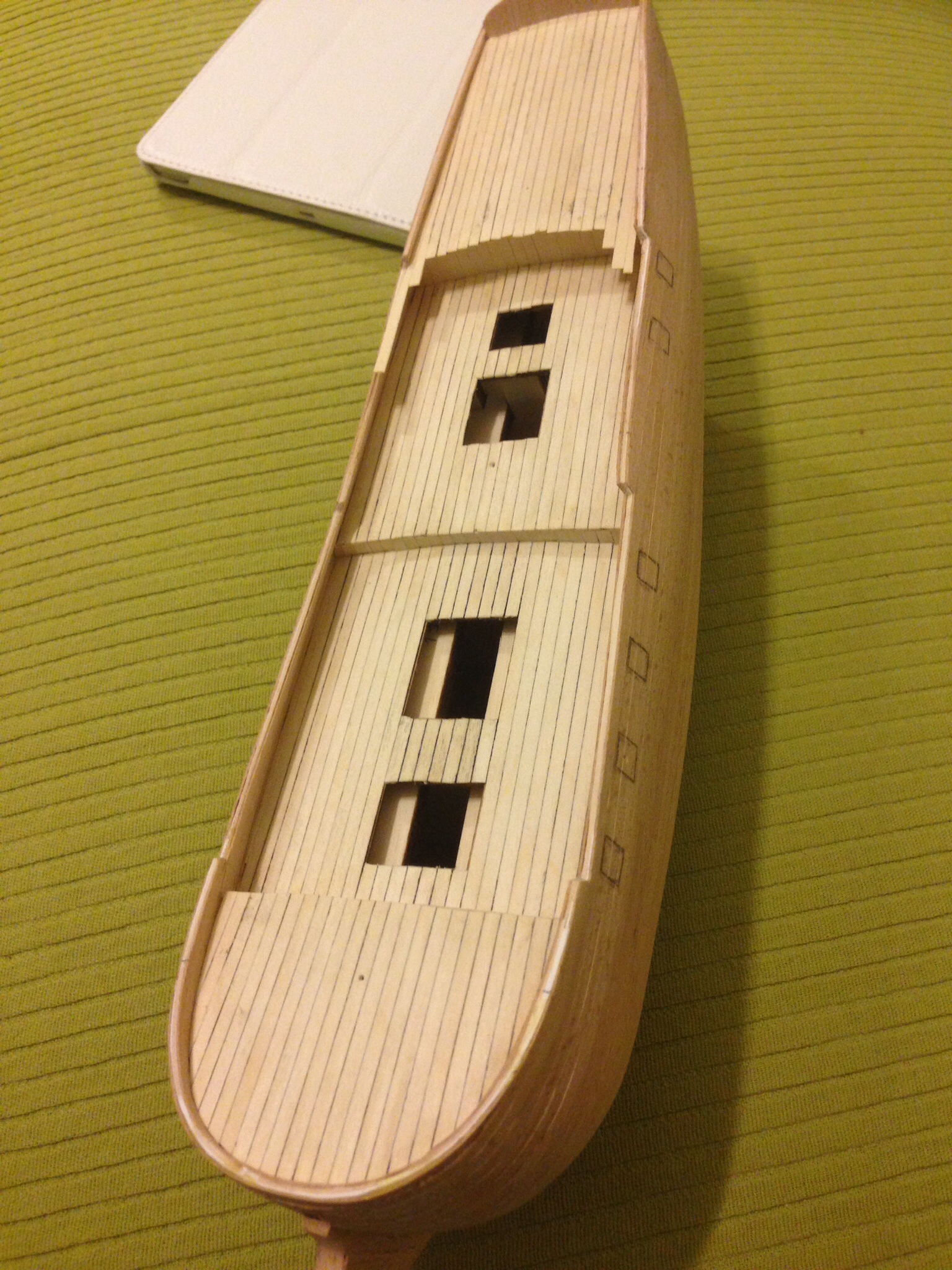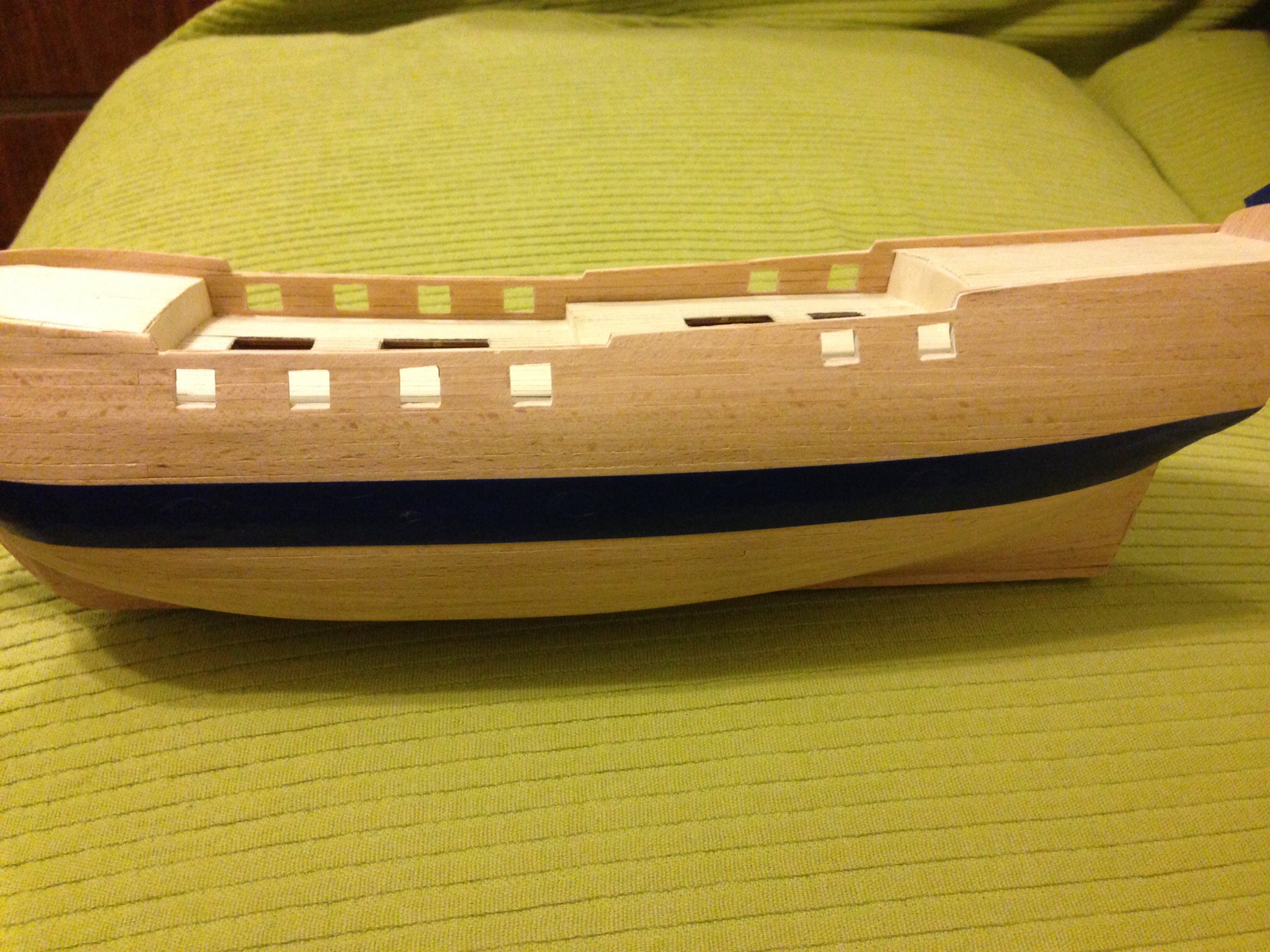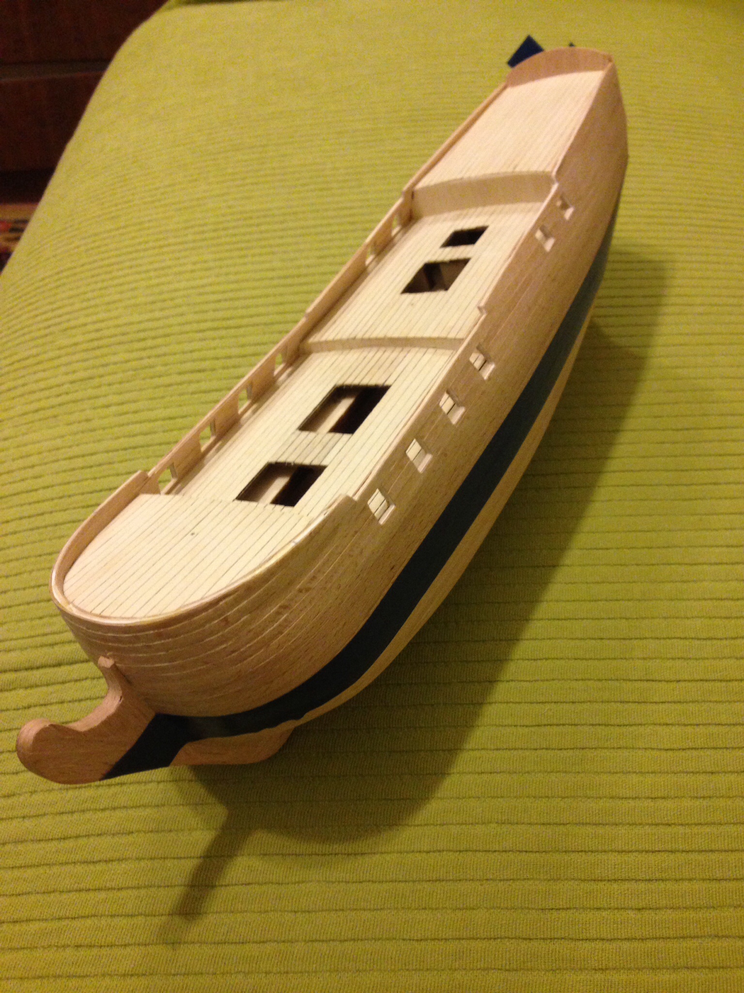 Когда закончу корпус, покрою лаком палубу и все остальное маслом. Масло у меня только льняное, сохнет тоже неделями, поэтому будет время заняться палубной фурнитурой