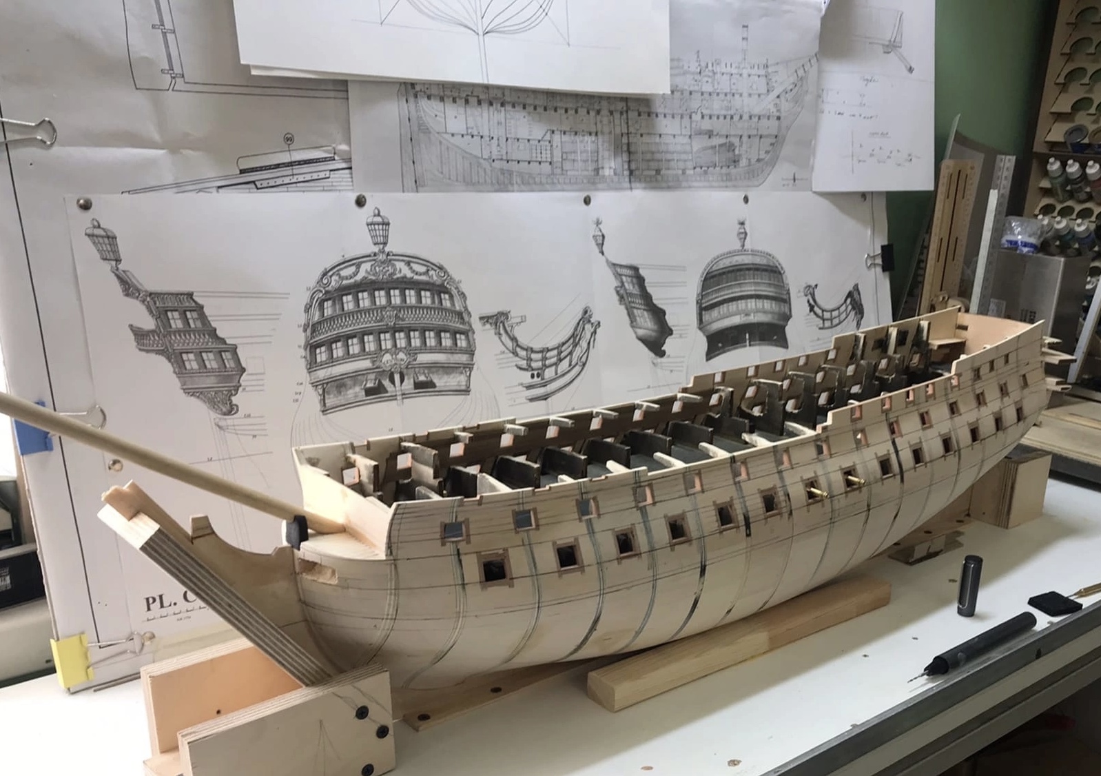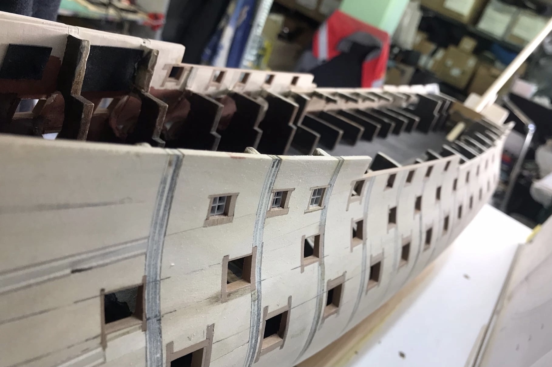 Делаю разметку портов. Всю голову сломал. На одном борту "худо/бедно" разметил. А вот как скопировать на другой борт. Шаблонов нет. Чертеж так себе. Может сделать разметку на открытой палубе где по 8 пушек . А потом от них плясать?