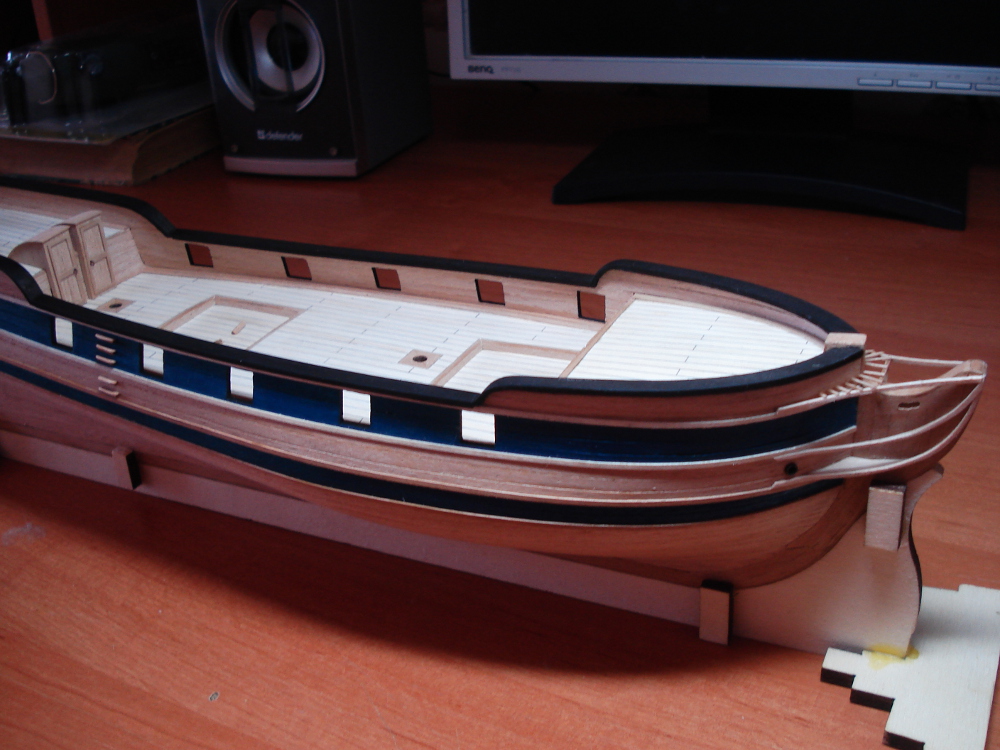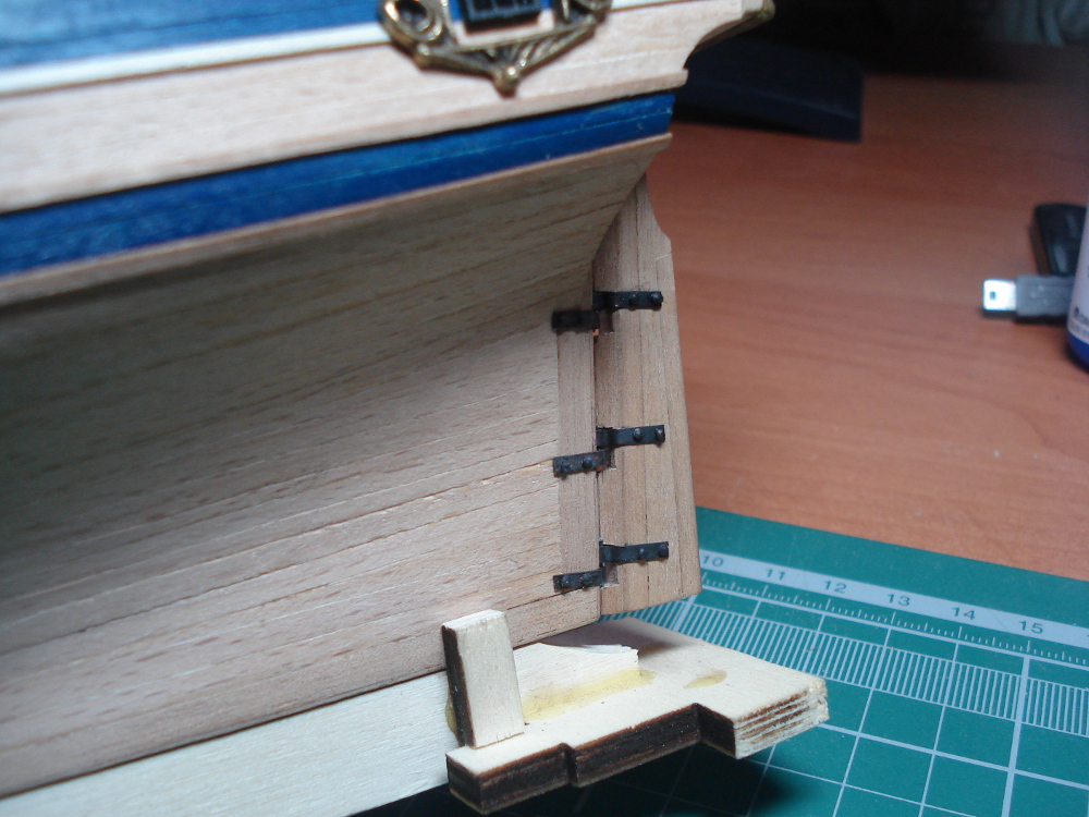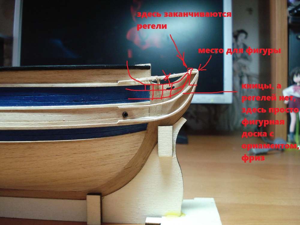 Украшения на корме я привела в божеский вид из того что было, именно таким путём, и трудов не боюсь. Если бы из фигурки из набора можно было бы что-то сделать, я бы истерик не закатывала.