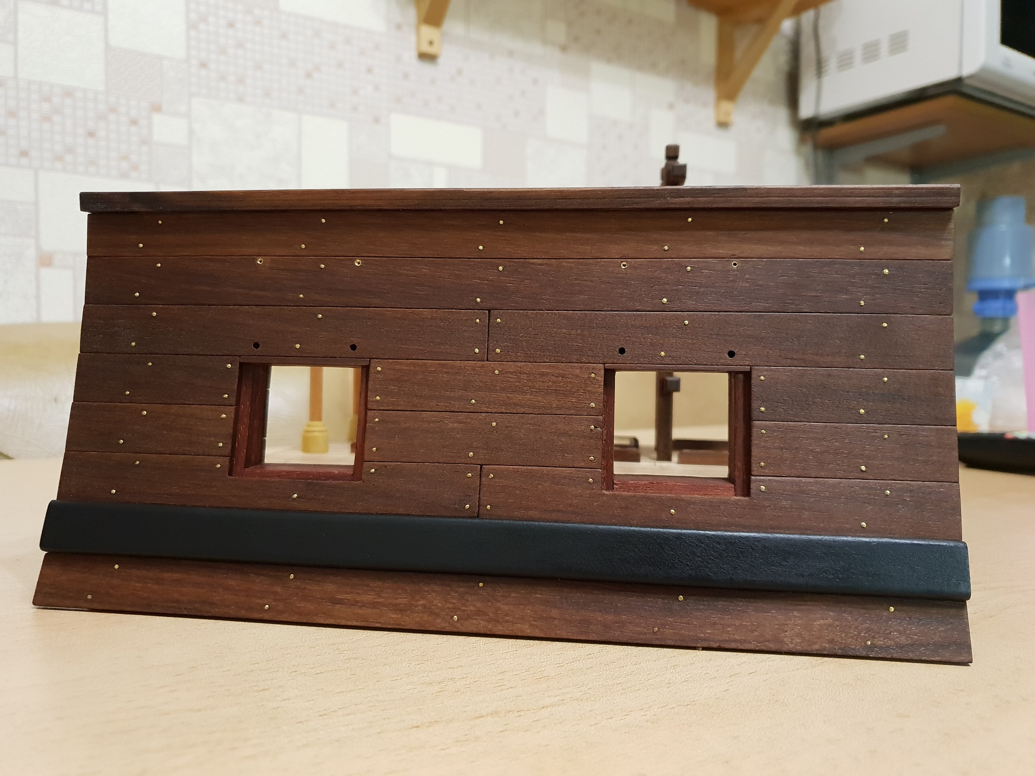 Скажите, а элементы каркаса (фанерные) обшиты шпоном, обработаны морилкой или как?