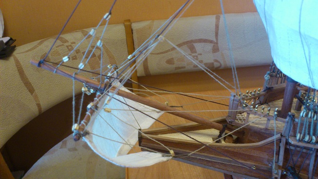 Подскажите, кто строил. Как проще: поставить реи на мачты, а затем паруса или закрепить паруса к реям и затем прикрепить все вместе к мачтам ?