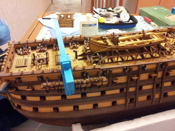 Установлен 1 ряд пушечных портов, шлюпка и т.д.
