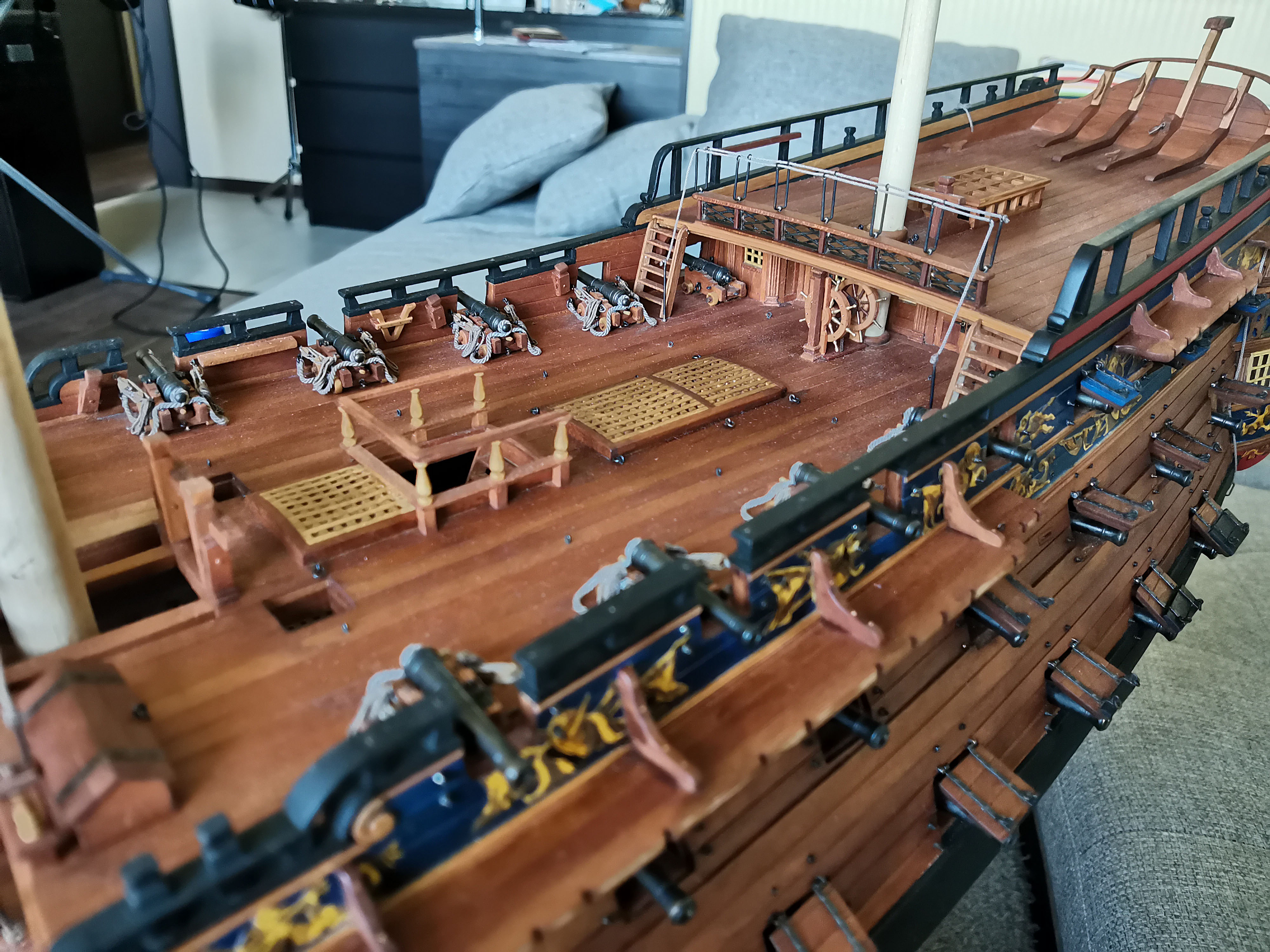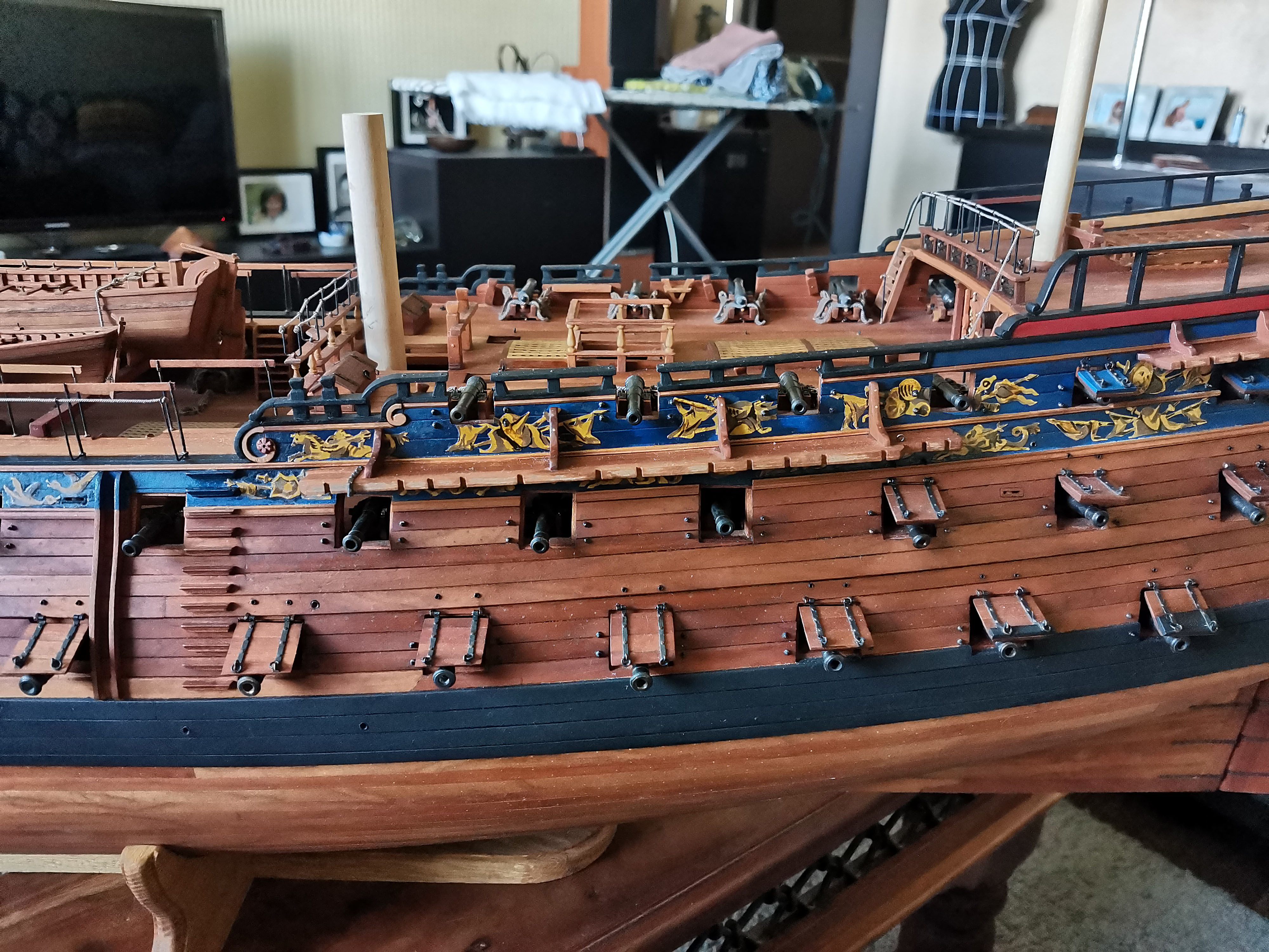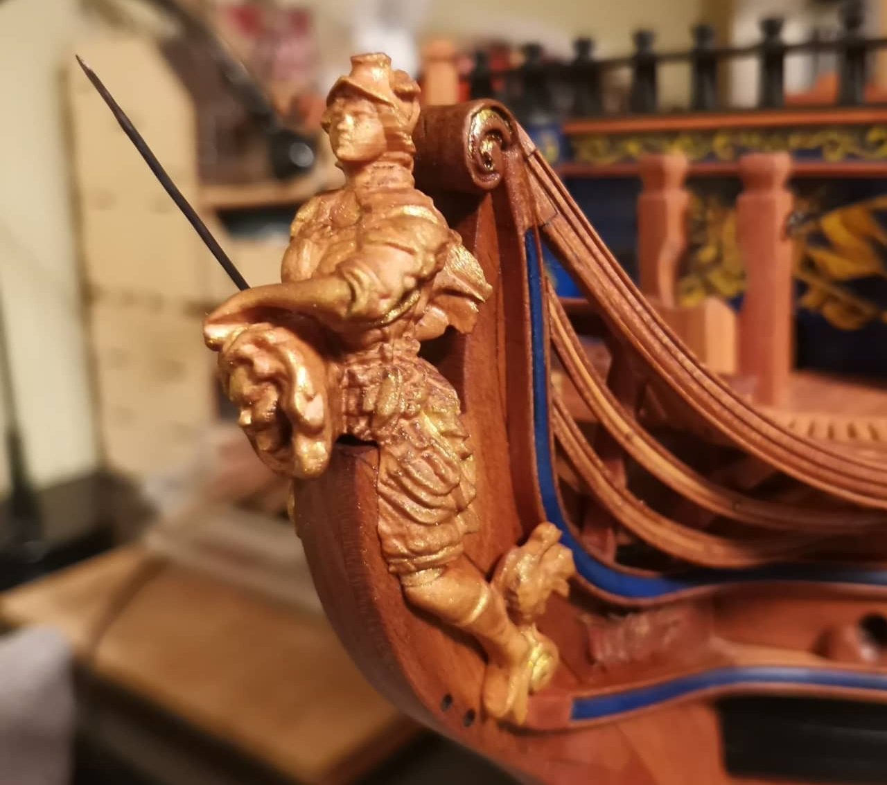 Забыл совсем, застопорилось все с кормовым декором. Пока попытки вырезать теть всяких не привели ни к чему. Уже стал подумывать распечатать на 3д принтере и позолотить и застарить.