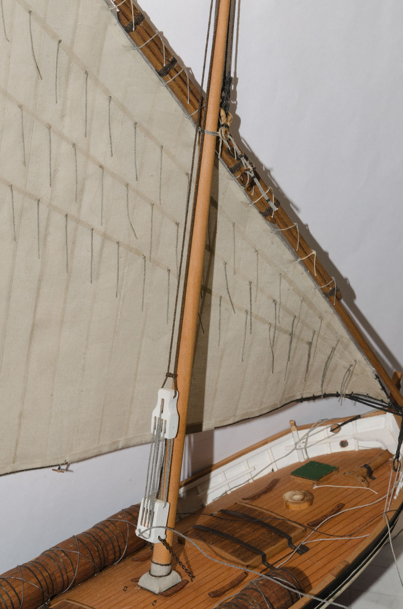 Закрепил рей на фале (хотя в моем случае скорее фал на рее, ибо рей посажен на штифт). Так все выглядит в целом: