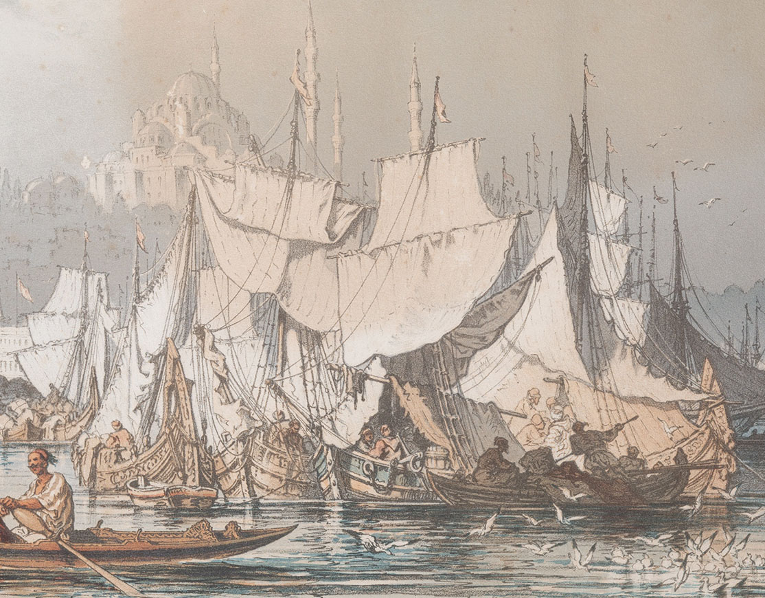 Еще к вопросу о масштабе - пара фрагментов изображений того времени, на которых видно соотношение размеров людей и лодок.