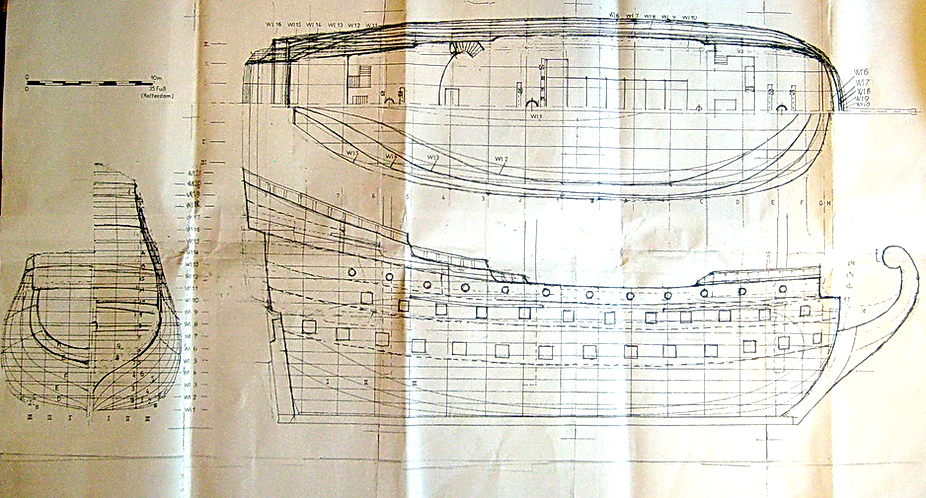 Добрый вечер! Вся желаемая вами информация на первой страничке обзора темы, но жаль что снимки не сохранились (но там мало что конструктивной информации, только снимки генуэзского оригинала). А рабочий чертеж исправлялся и кроился в ходе работы. По принципу накладки на чертеж голландского корабля фрагменты увеличенного фото Нептуна. А дальше как глаз и собственные умозаключения сподвигли.