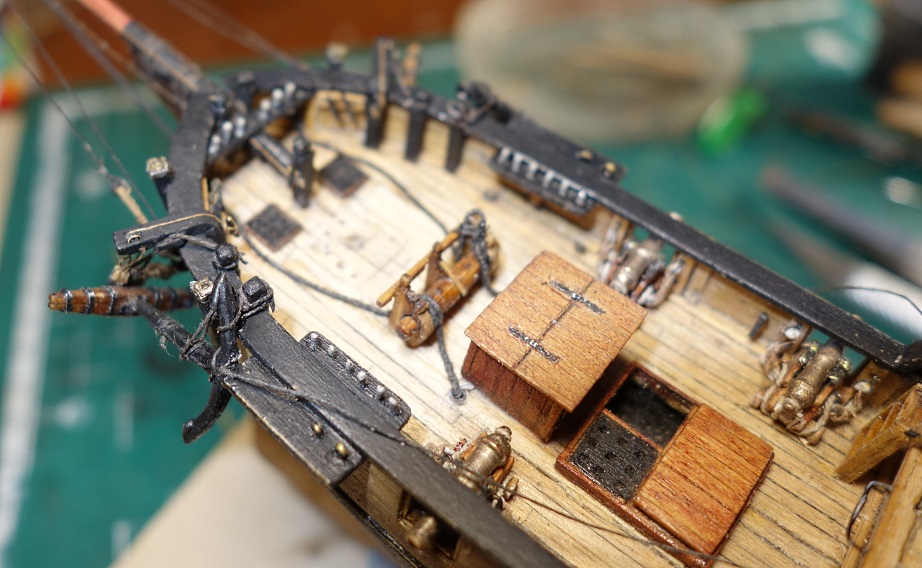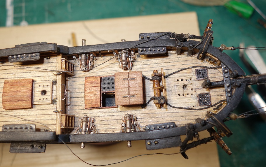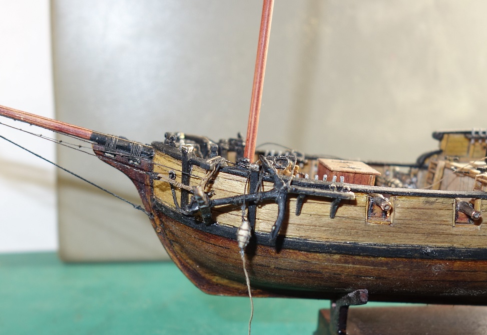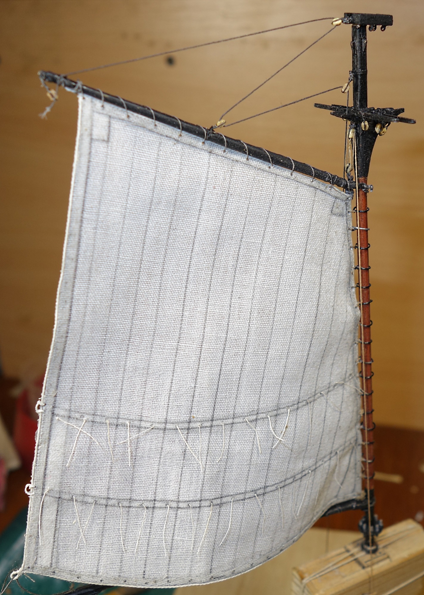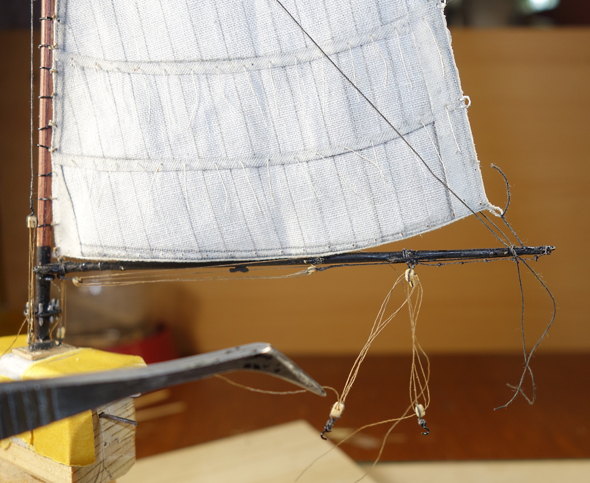 Но уж если говорить совсем откровенно, то и места для проводки шкотов без-гикового паруса у меня на модели нет...А вот вариант с погоном шкота - самое то...