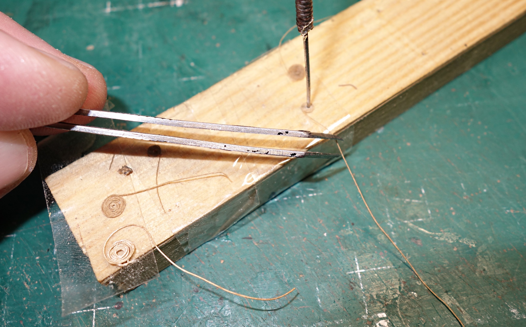 Для дооснастки мачты (установленных фок и фор-марселя-брасов) навиваю "фламандские бухты" из нитей соответствующей толщины