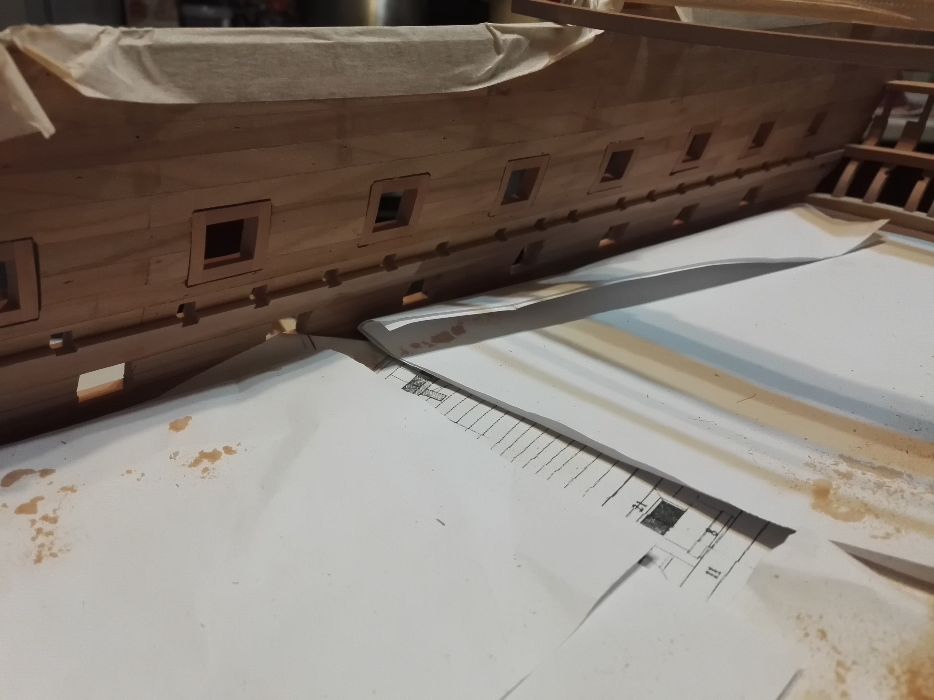 А пока приступил к "рубке" корпуса под бимсы опердека. Была идея сделать по исторически сложенной сборке с внутренней разметкой, но плюнул, пошел путем ДШ, через борт. Так проще.