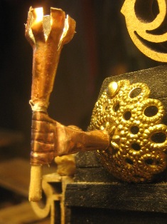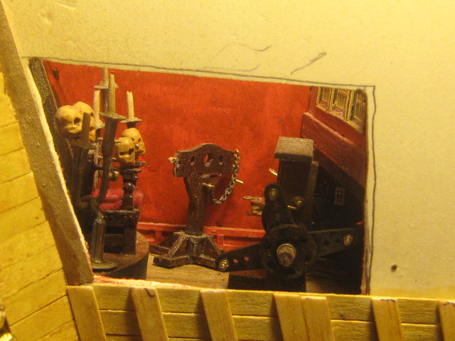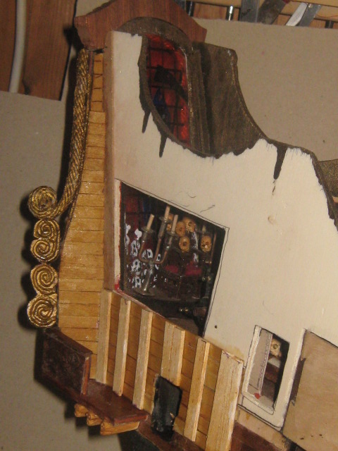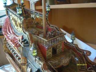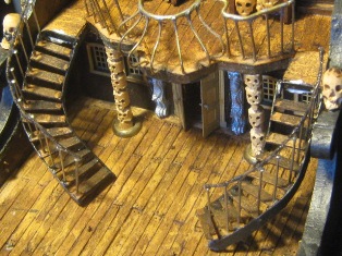 (перевод) Здравствуйте, Mario! В своих творческих поисках, вы приходите к смелым решениям, благодаря вашим фантазиям. Сделать корму в разрезе с видом каюты Барбоссы и Эдварда Хича (Черной Бороды)- это смело!. Но, мне кажется, что вы этим отдалились от оригинала. Немножко теряется сама идея создания данного образа. Он (образ) становиться ближе к Летучему Голландцу, где обитают не люди, а монстры, и смерть там живет на всех своих правах и на правах легенды о Летучем Голландце. А на корабле Черной Бороды, жили и работали обычные люди и, при этом, очень суеверные. Вся прелесть декора сделана на оригинале и добавлять от себя мистики, это уже на выбор создателя этой модели. Это уже не копия корабля, а что-то свое, свое воплощение своего видения на пиратские легенды. Это мое мнение, Mario. С уважением, Виталий!