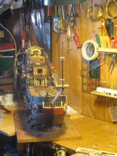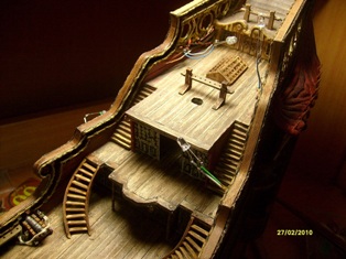 Ciao Vitmaslov osservando la tua Queen Anne's Revance si nota che c'è una cavigliera sul tetto dell'ultima cabina verso poppa.