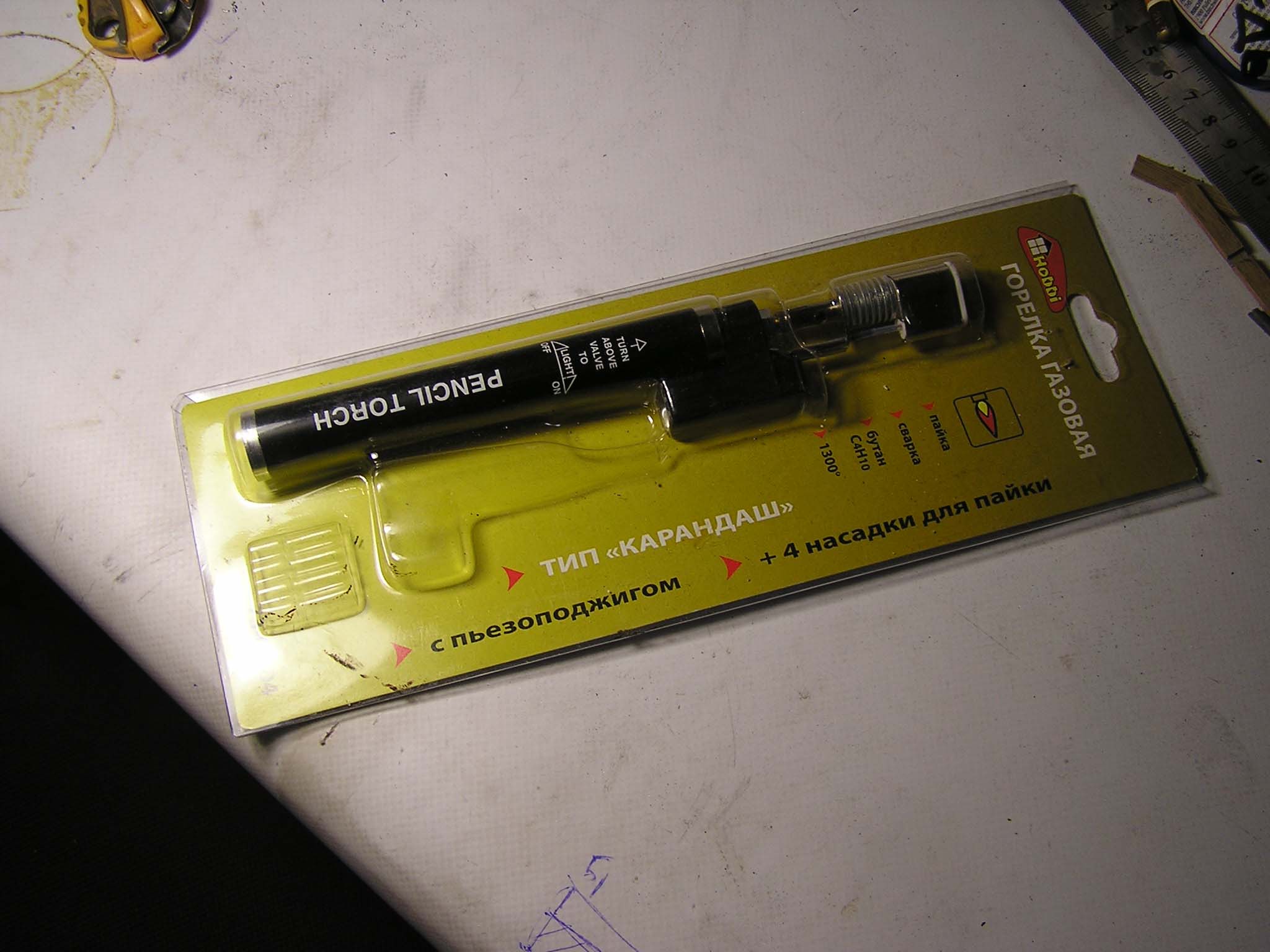 Вот, приобрел такой гаджет. Буду осваивать пайку. Заправляется газом от зажигалки, температура 1300. Пьезо-розжиг. Надеюсь, что пригодится.