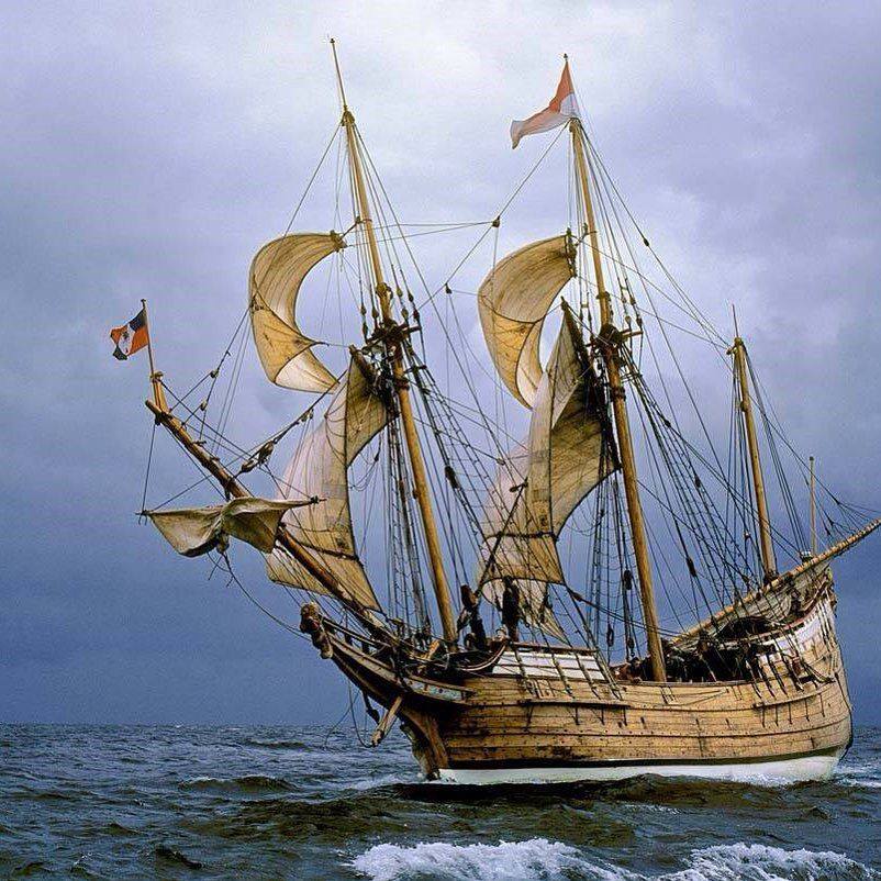 Я просто напомню, что термин корабль, как тип парусного вооружения, появился позднее галионов, нефов, или что там изображено на этой картинке. Классификация, о которой мы говорим, сформировалась чуть ли не в XIX веке (знатоки меня поправят) и справедлива для этого времени и последующего. Поэтому попытки определить тип парусного вооружения галиона XVI - XVII века и разобраться, корабль он или барк следует считать некорректными. Не стоит проецировать эту классификацию на прошлые времена, когда ее не было. Это не правильно.