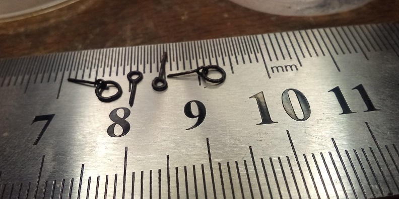 рымы не сложно и самому согнуть из проволоки, на фото рымы для 48го масштаба, решай сам, паять обязательно, даже если не разогнется, и чернить тоже