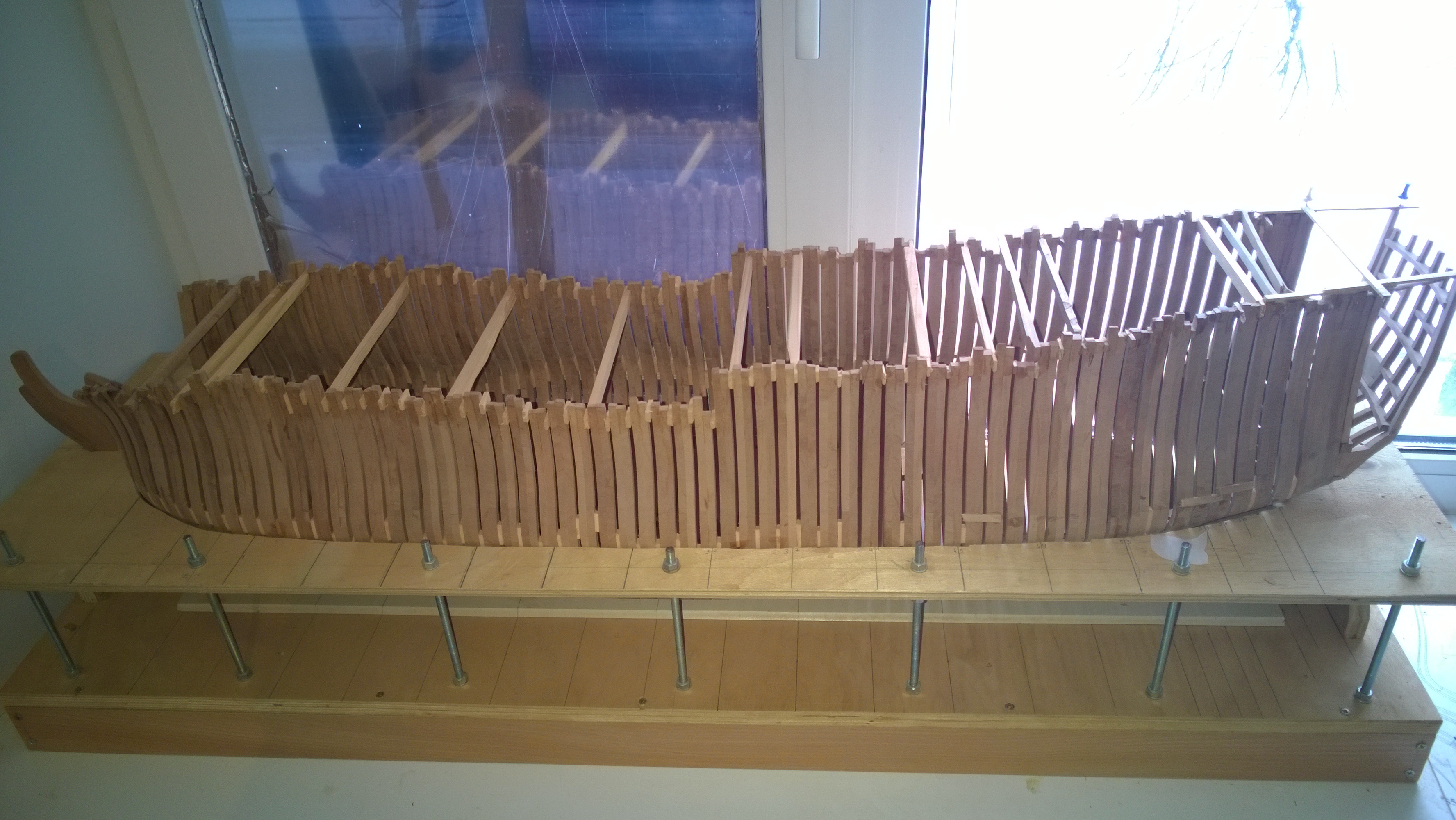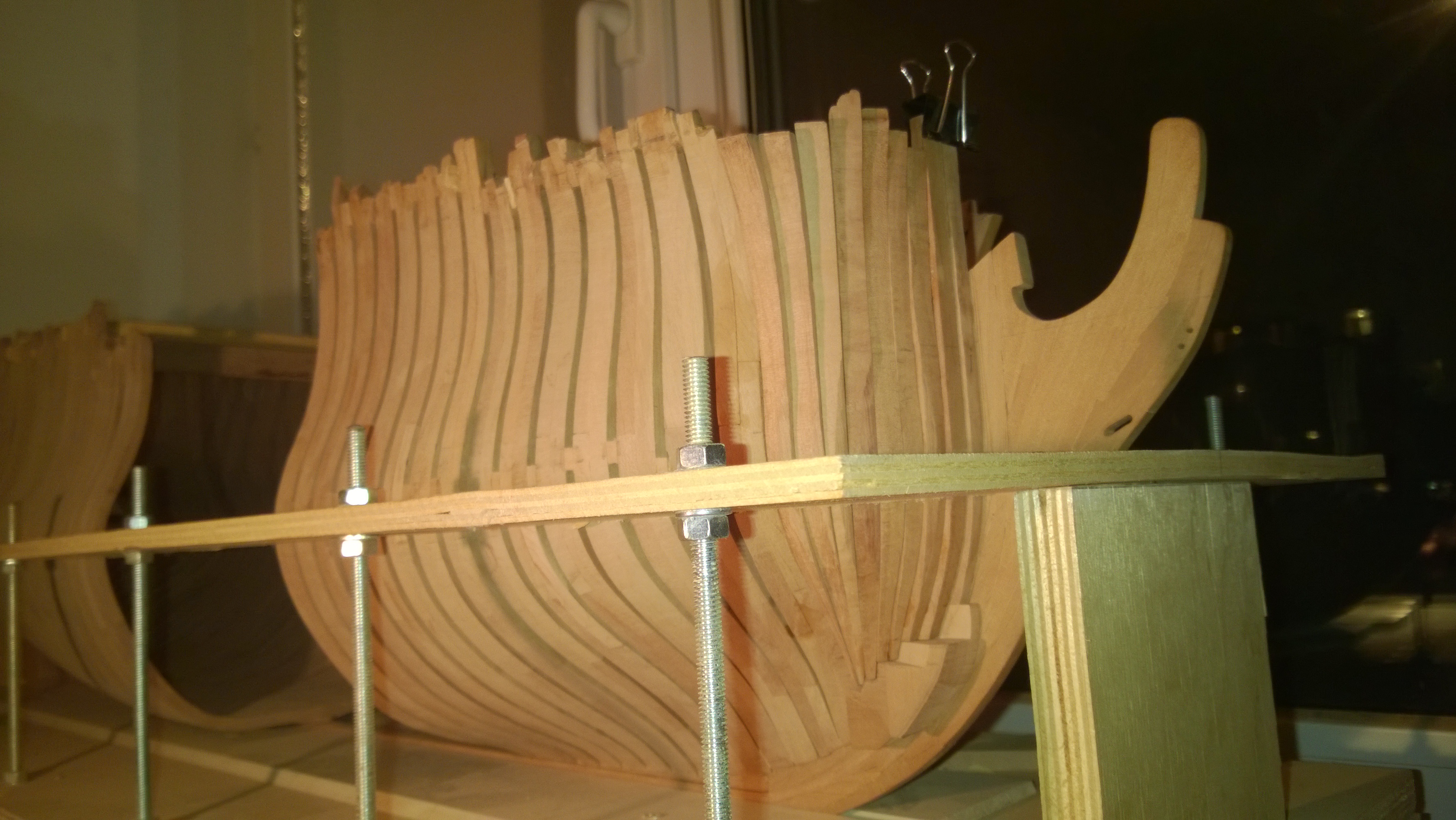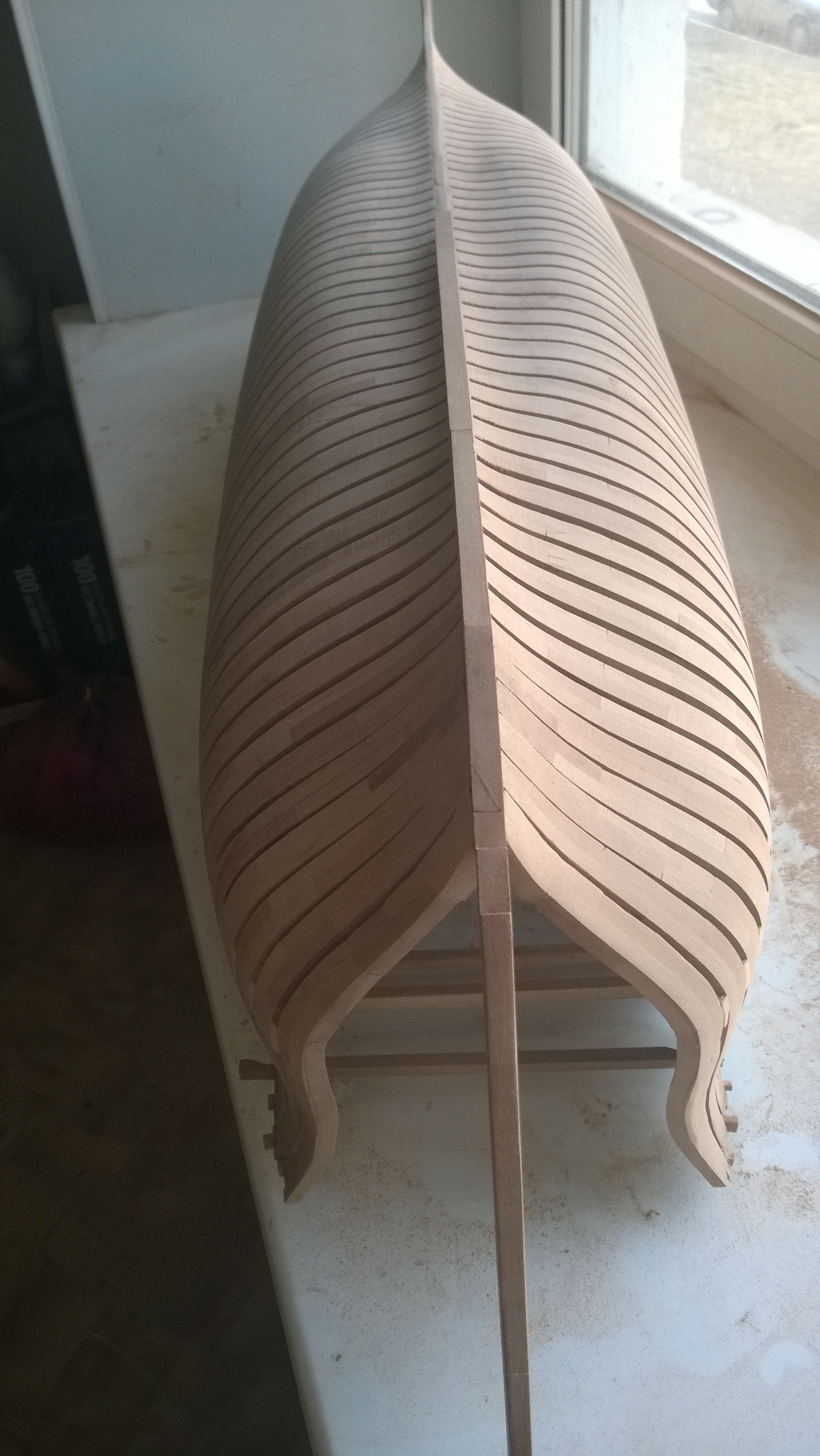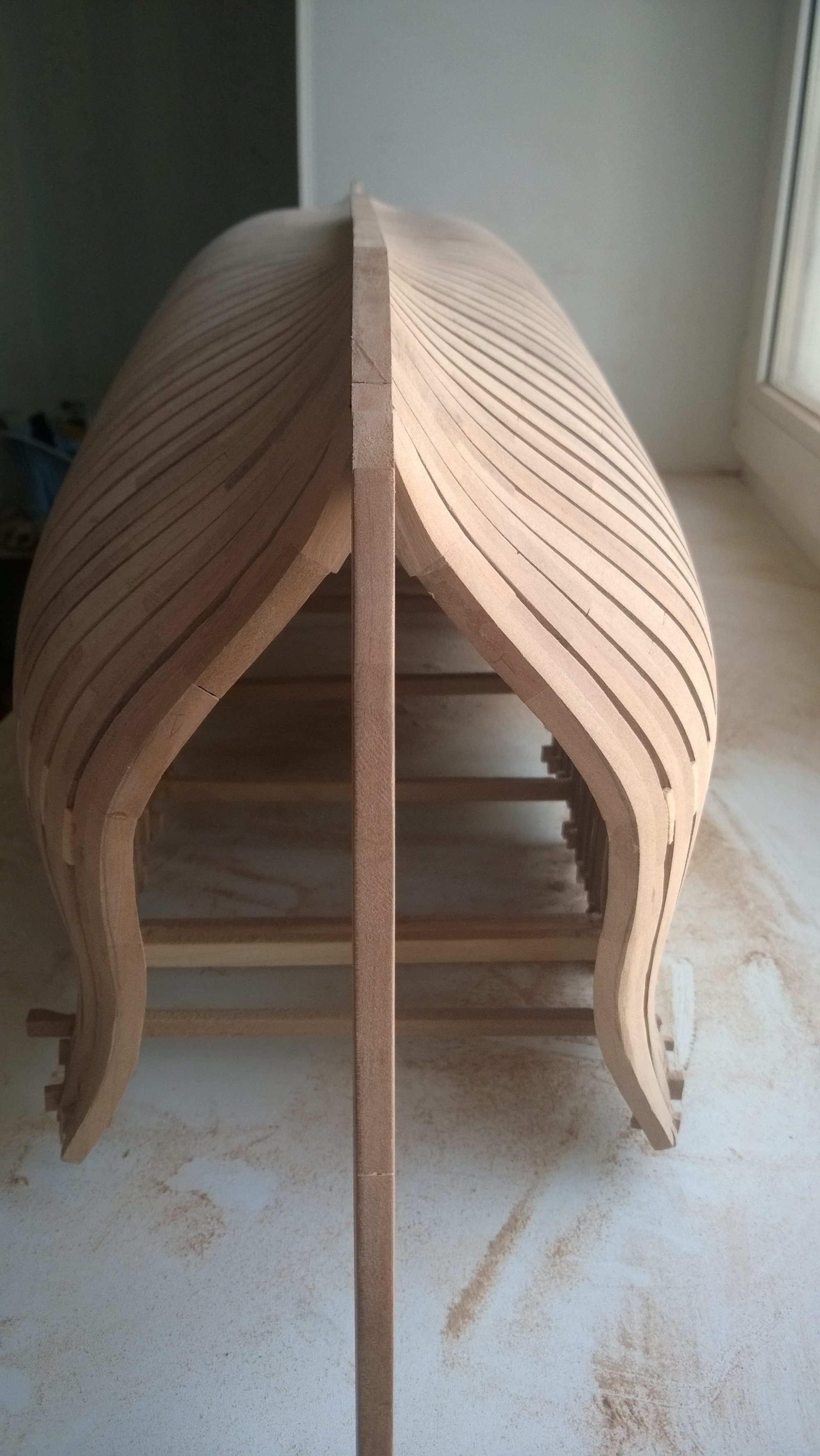 Ну да. Воткнул довольно быстро. Проверил борт рейкой,удалил косячки. Проверил ширину по скулам-всё ОК. Начал малковку левого борта.