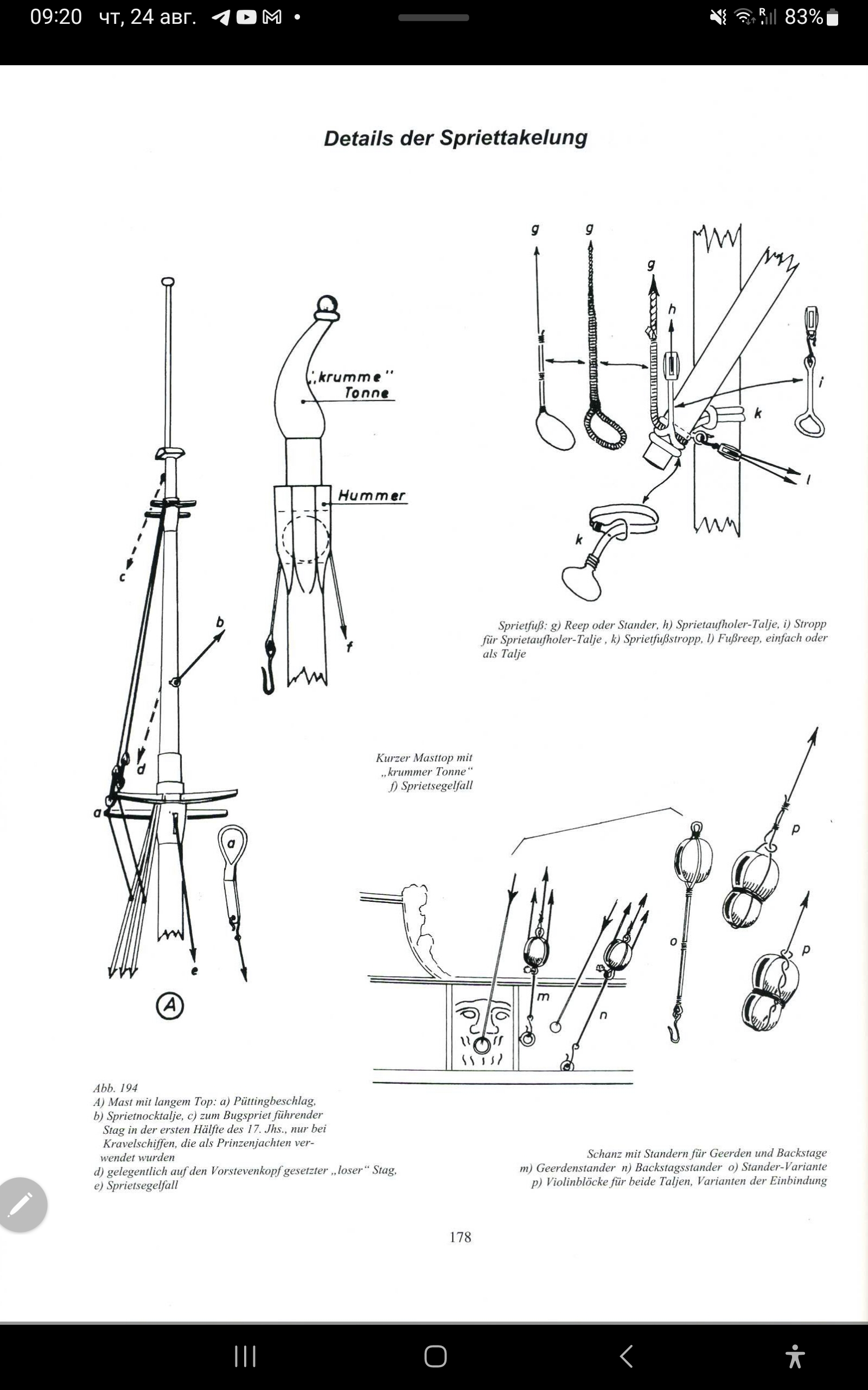 *по поводу подвески шпринта... петля , ведь это традиционный и столетиями устоявшийся способ шпринтового вооружения насколько я понимаю ... это же по любому удобно и быстро обносить шпринт вокгруг мачты при смене галса, используя такую конструкцию, да и и при уборке паруса..когда надо разоружить шпринт быстро... заморочно ,когда древко шпринта принайтовлено к мачте...