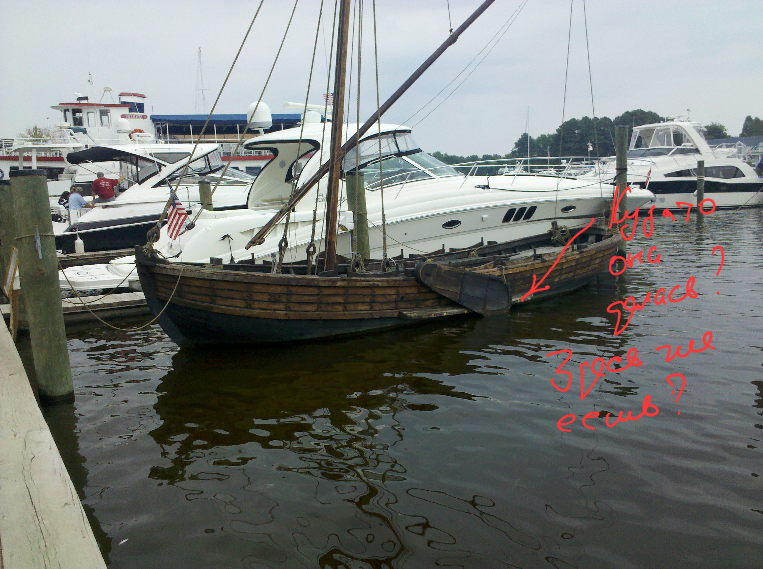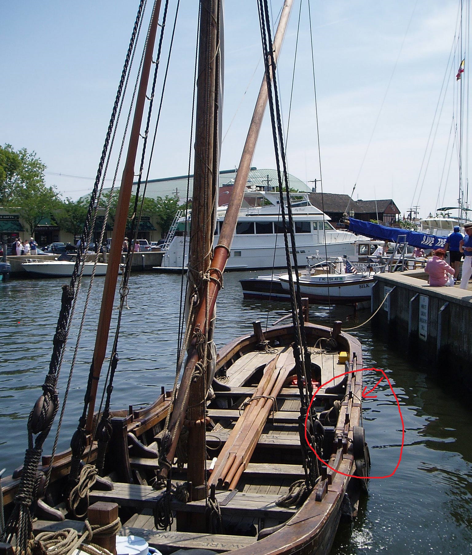 ...крепление шпрюйта в петле,смотрится гораздо более удобнее и логичнее,чем тот вариант что показали реконструкторы, то же касается и швертов...мне кажется логичнее предположить что "верхушка" шверта сидит на жесткой оси...слабо представляю как он,шверт будет работать,если ось заменить куском цепи...может на фото не всё видно? На цепи ,вместо оси,он же просто будет болтаться за бортом...как же он будет работать в качестве киля?