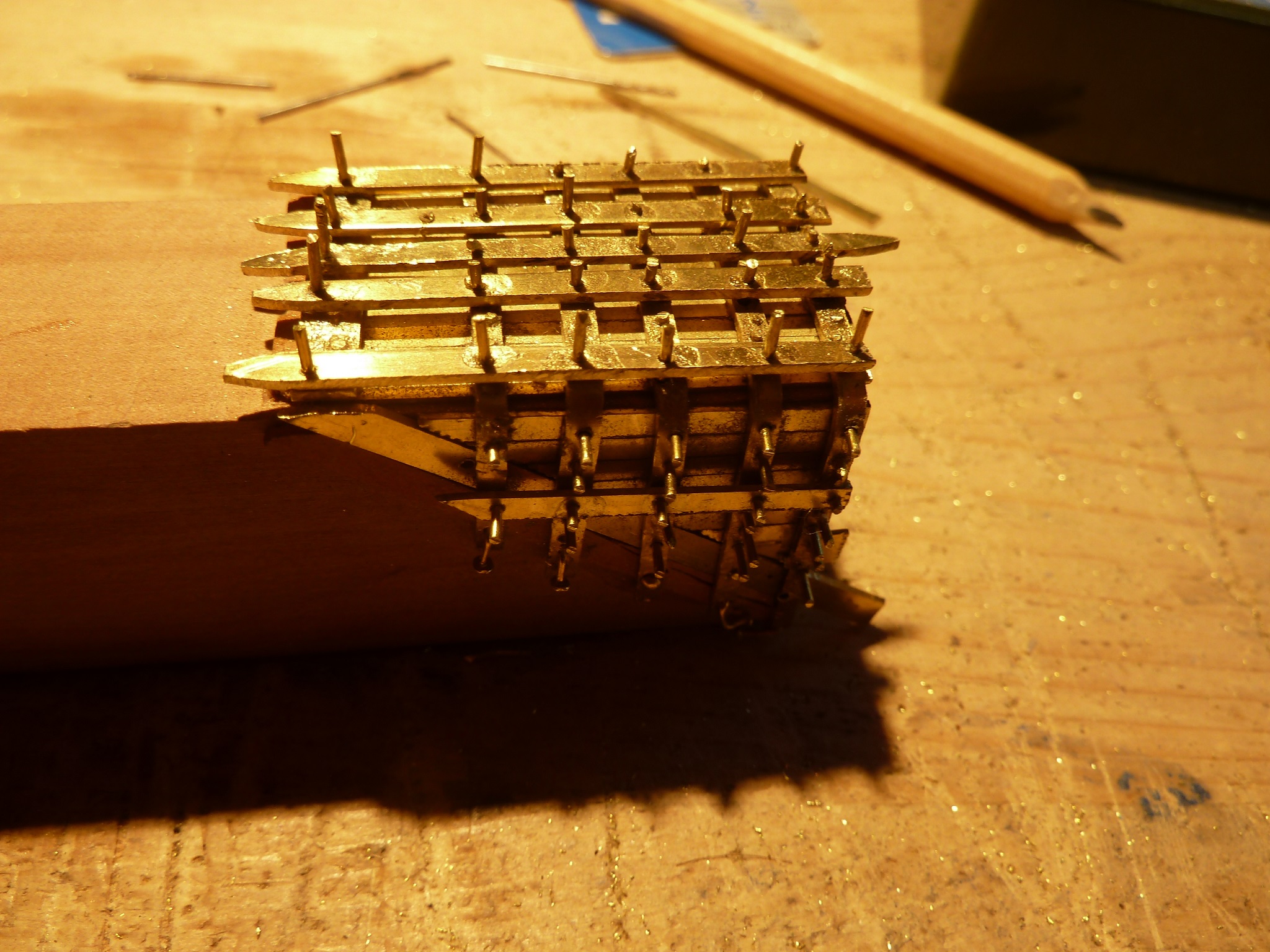 Ковши это чума! Их надо собирать на деревянном бруске, затем снять с основы и заклепать. Но без заклепок все развалится. Клепала на основе и, конечно же, не смогла снять ковш с основы.