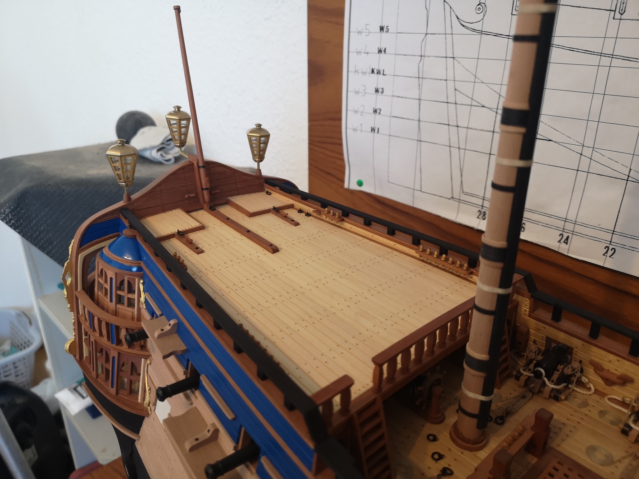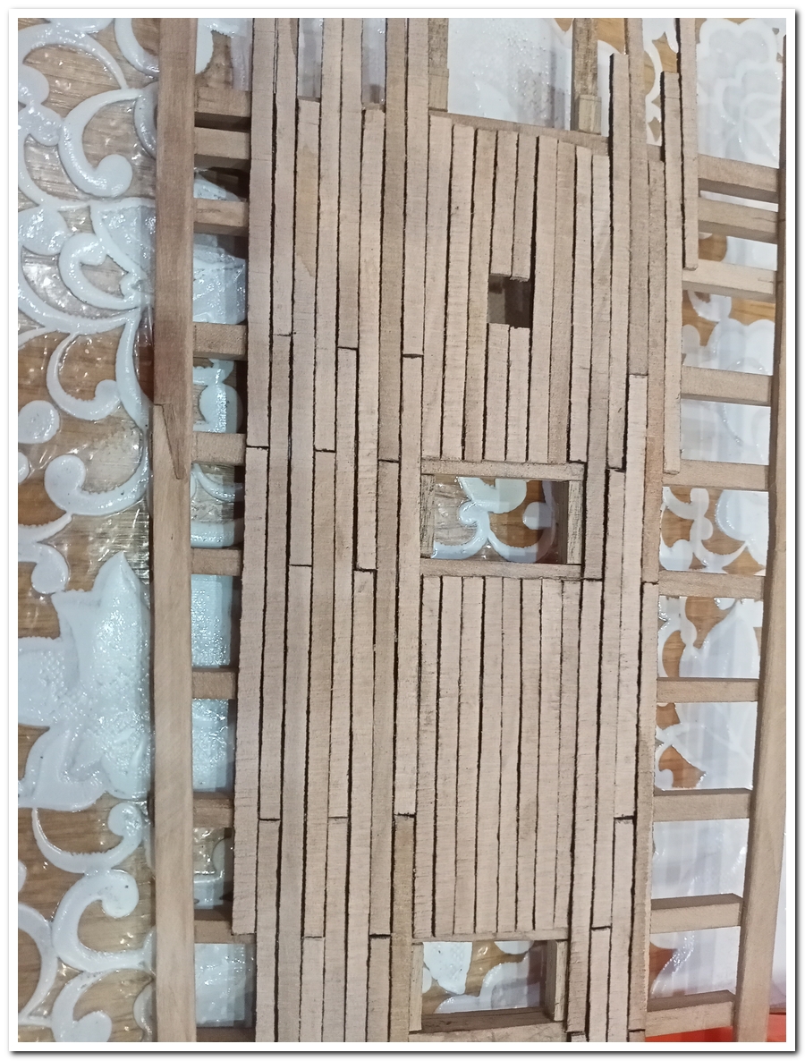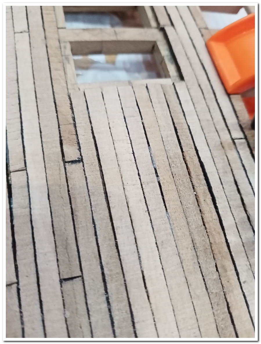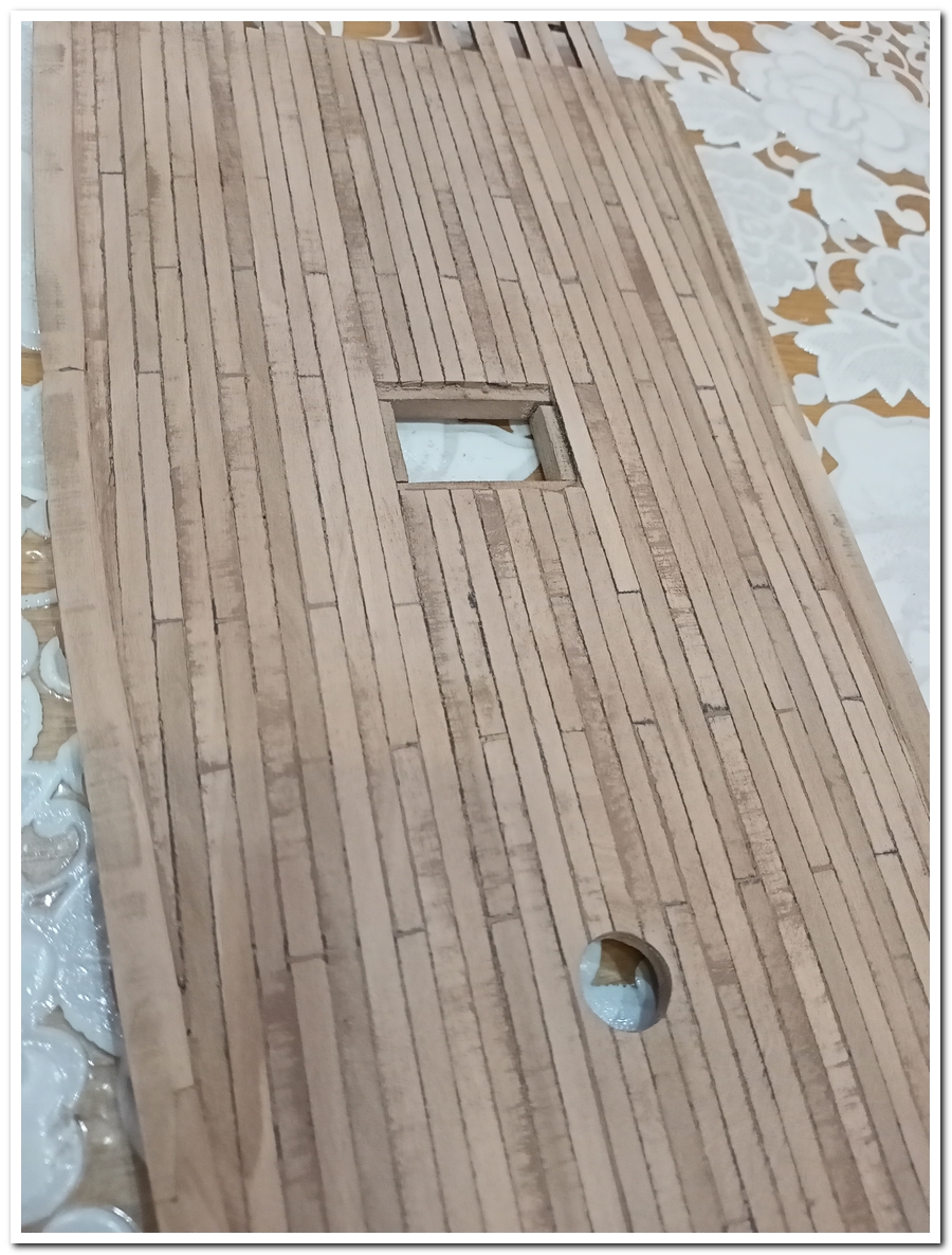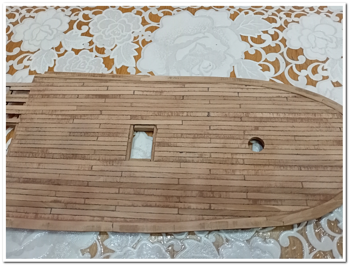У Ханна на чертежах обводы палубы не соответствуют самой палубе. В реалии она уже сильно и чуть длинее приходиться подгонять по месту. Шпангоуты чертежу соответствуют разметка нижней палубы тоже. А сама палуба почти на 15 мм уже.