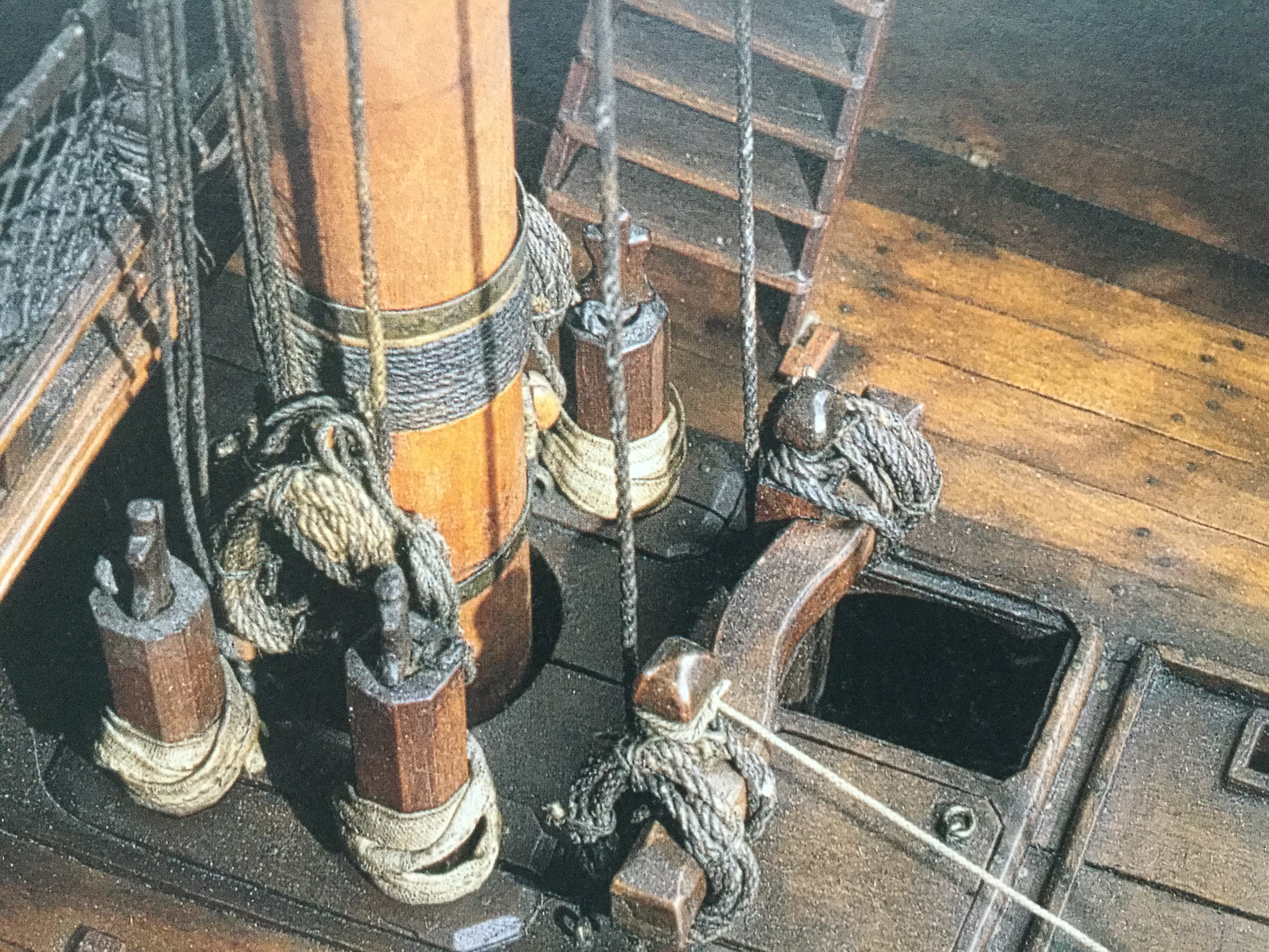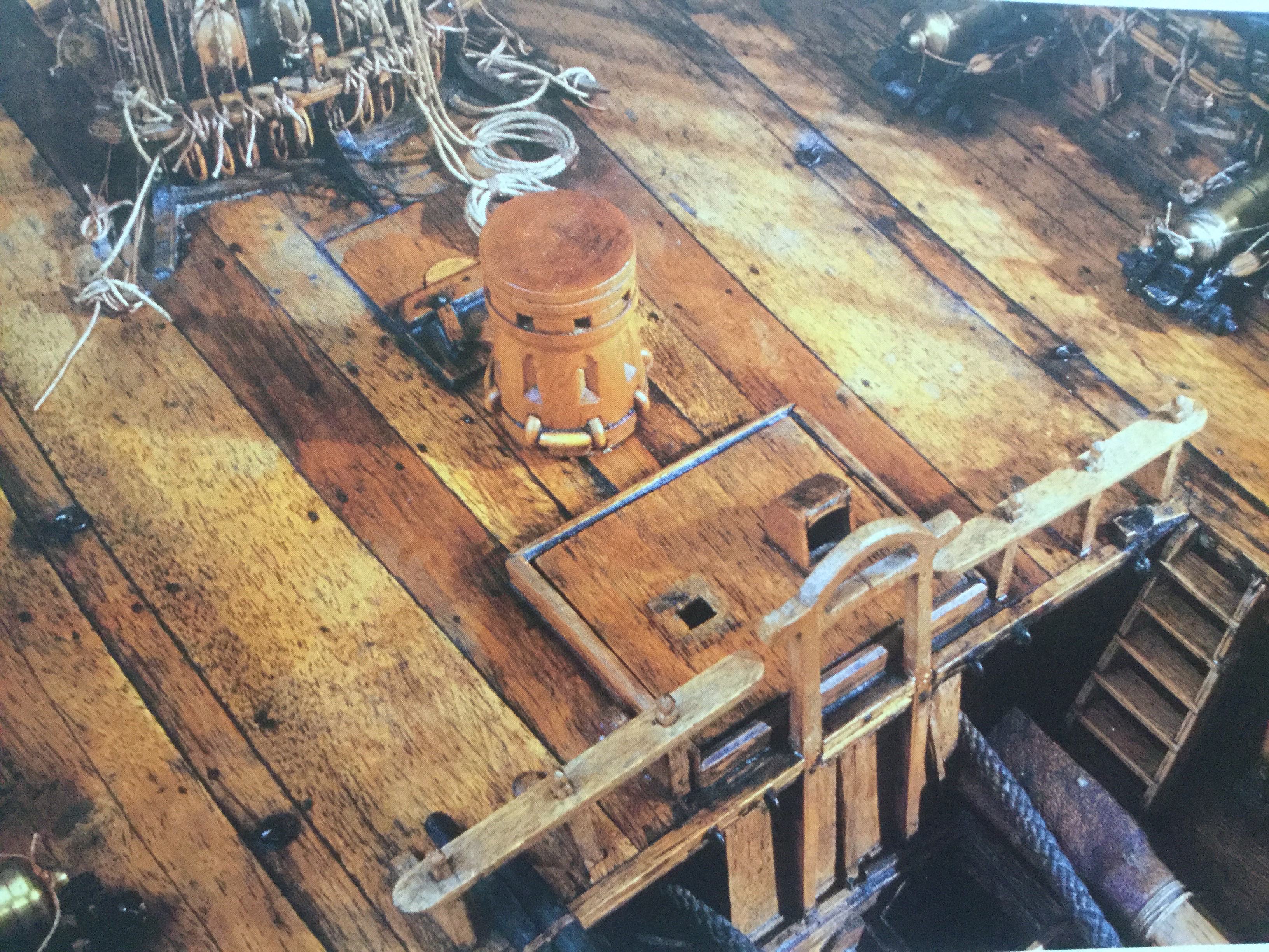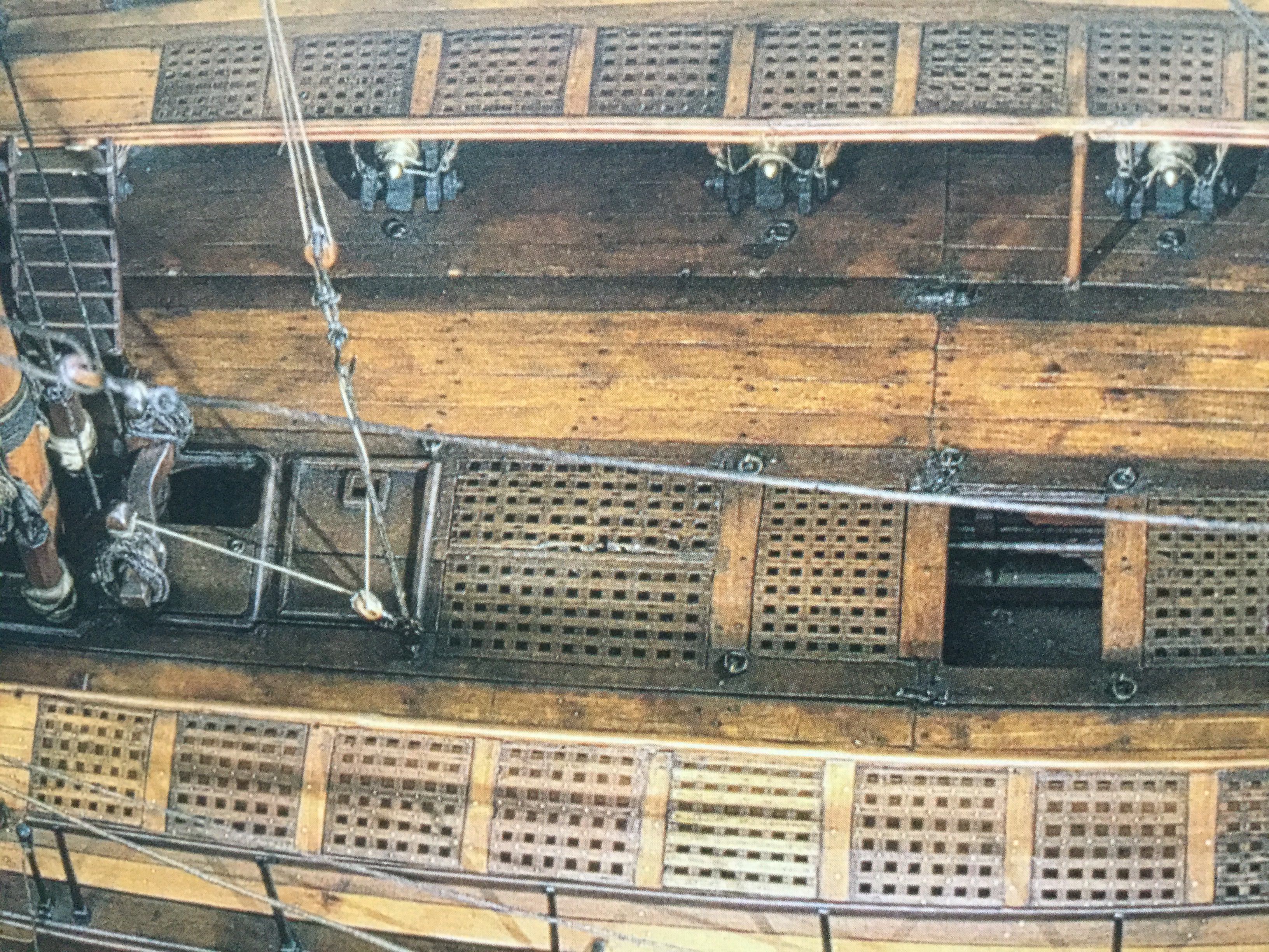 Мало того, что светлые крышки не смотрятся, так это ещё и неверно. Крышки должны быть одного цвета с комингсами, карленгсами, с этими битенгами пресловутыми, потому что делались из дуба и точно так же обрабатывались. Посмотрите даже модели из Парижского Музея.