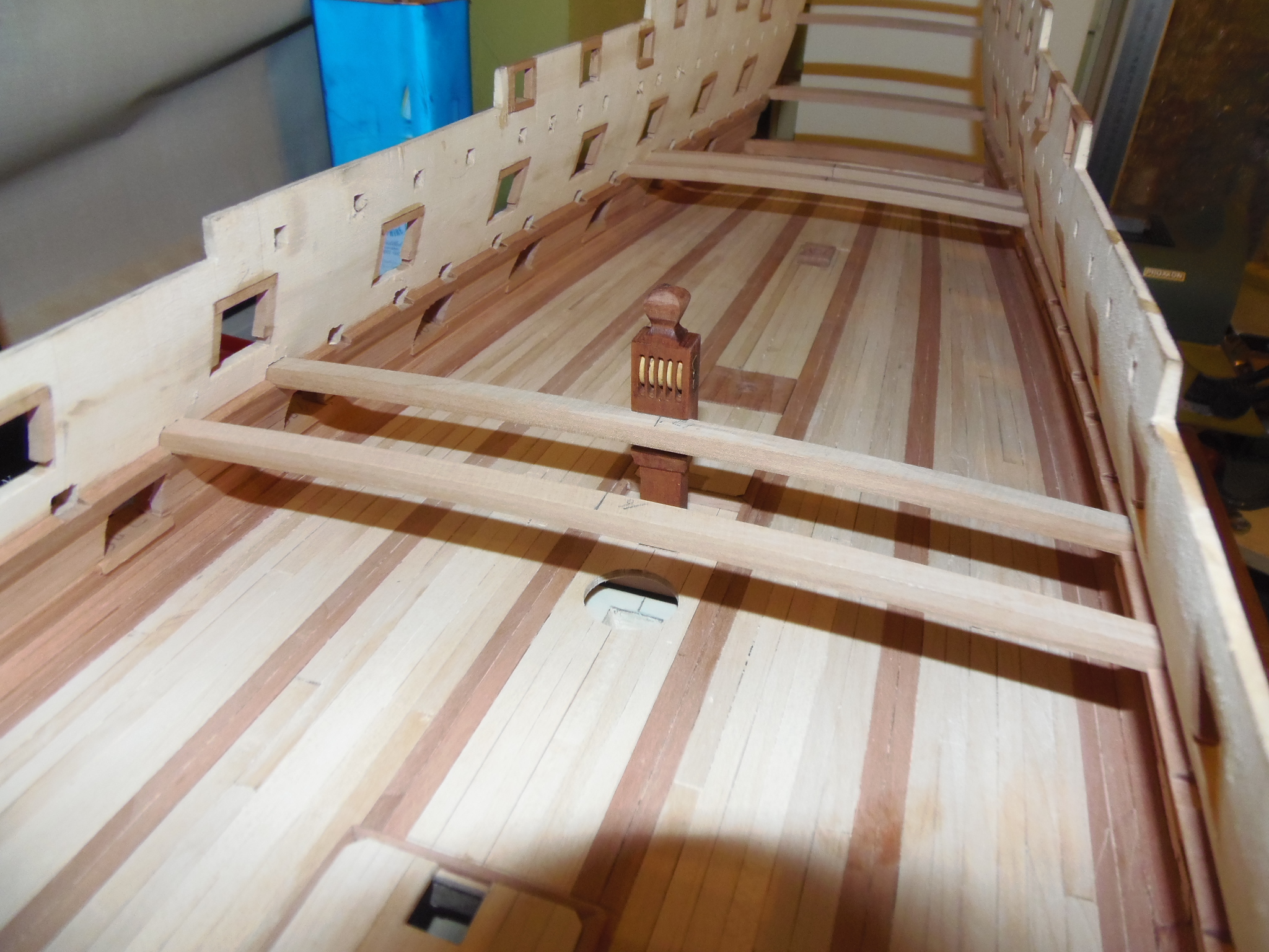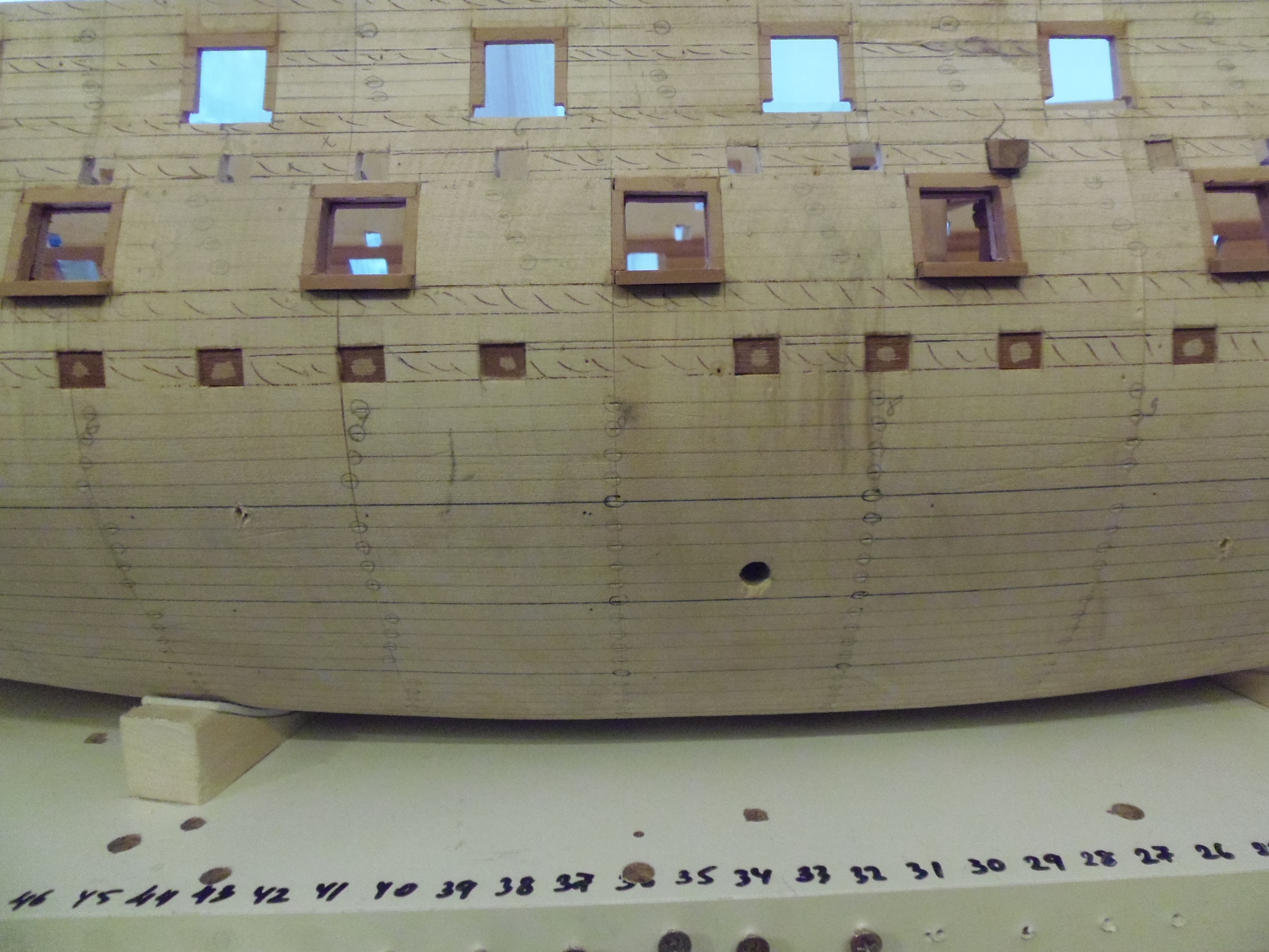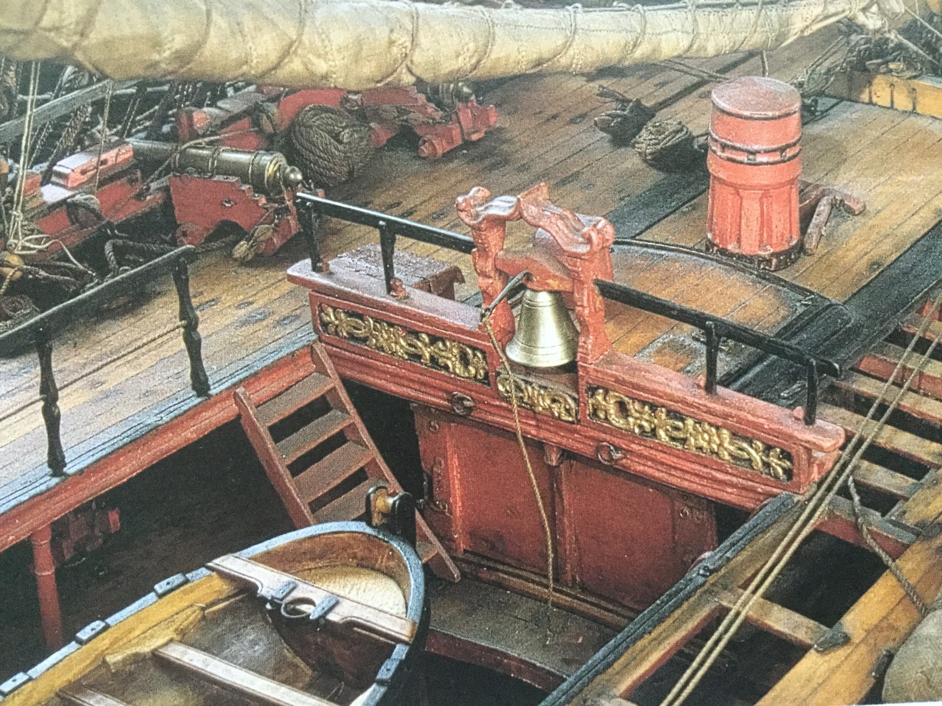 Мало того, что светлые крышки не смотрятся, так это ещё и неверно. Крышки должны быть одного цвета с комингсами, карленгсами, с этими битенгами пресловутыми, потому что делались из дуба и точно так же обрабатывались. Посмотрите даже модели из Парижского Музея.