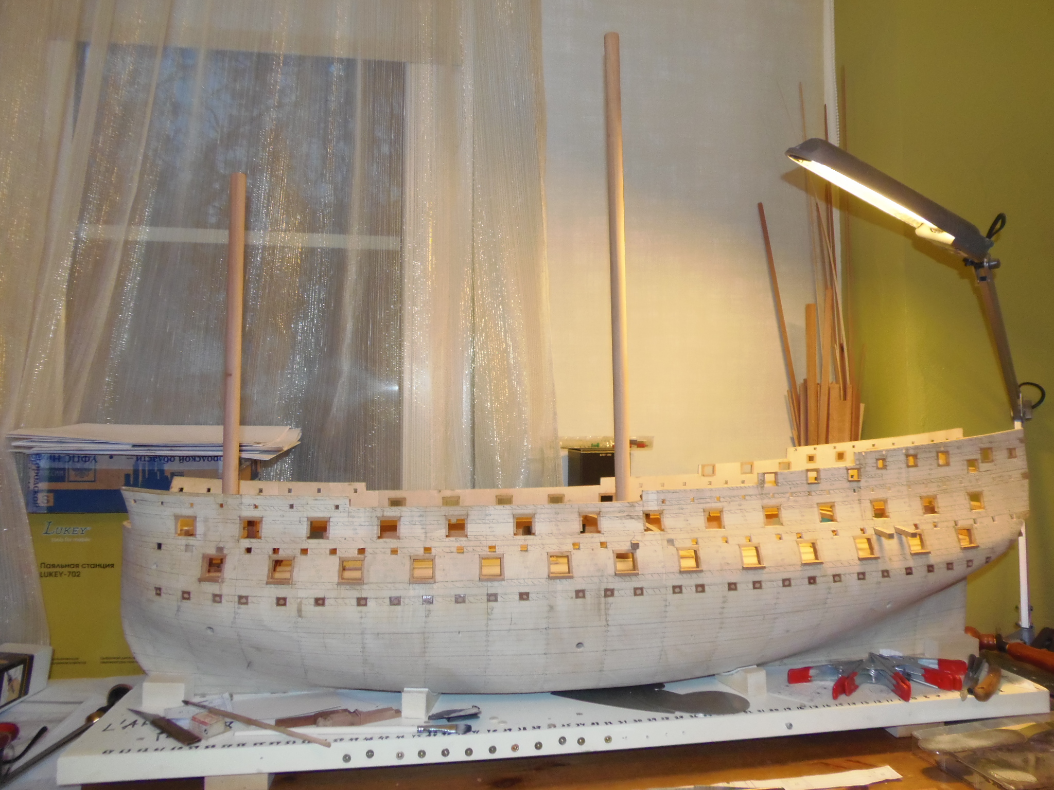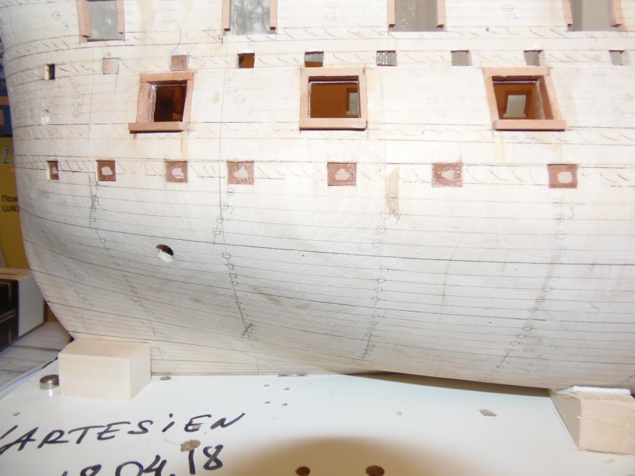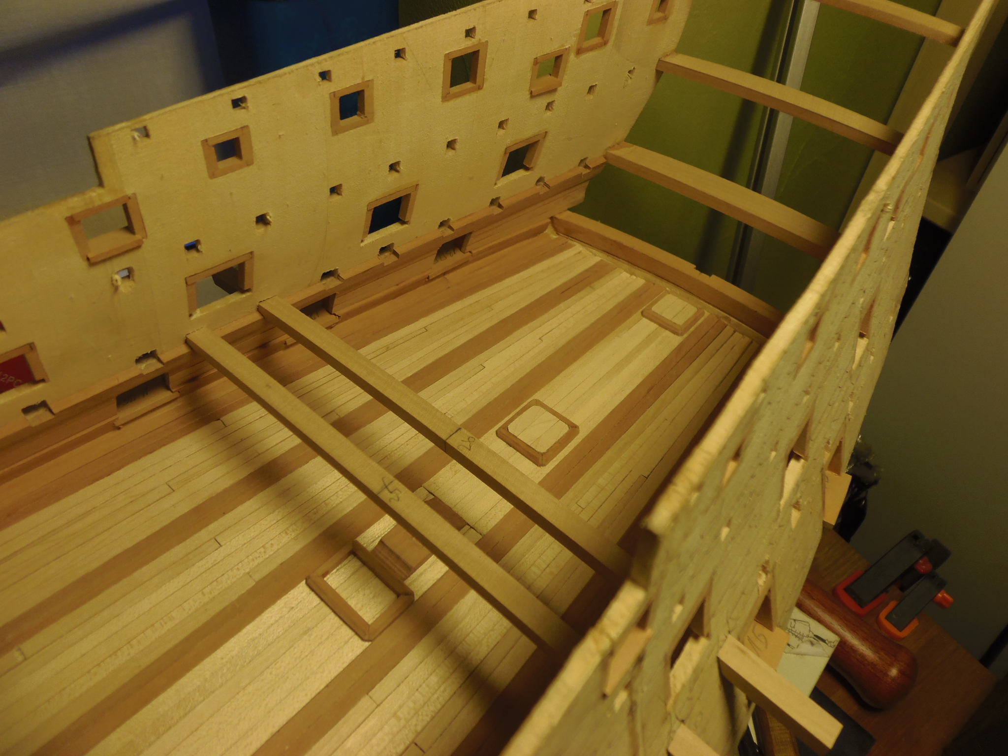Помню, помню, спасибо! Хотя по цвету крышек на моделях в целом не так все однозначно. На некоторых, как видно на фото, цвет идет такой же как и цвет( материал) палубы. Моя палуба из клена слишком светлая, несомненно, для этой модели. На следующие палубы, пожалуй, буду брать грушу. Люки будут еще тонироваться маслом цветным и я их сделаю темнее, постараюсь от оригинала не особо отрываться. Если не удастся нормально затонировать клен, то возьму материал потемнее, не проблема- еще ничего не приклеено.