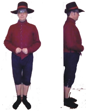 Поскольку на фотках и чертежах скульптуры детально не показаны сделал себе хитрую картинку. Одел костюм 17 века и сфоткался в двух ракурсах. Сам себе модель. Хоть пропорции теперь будет легче соблюдать.