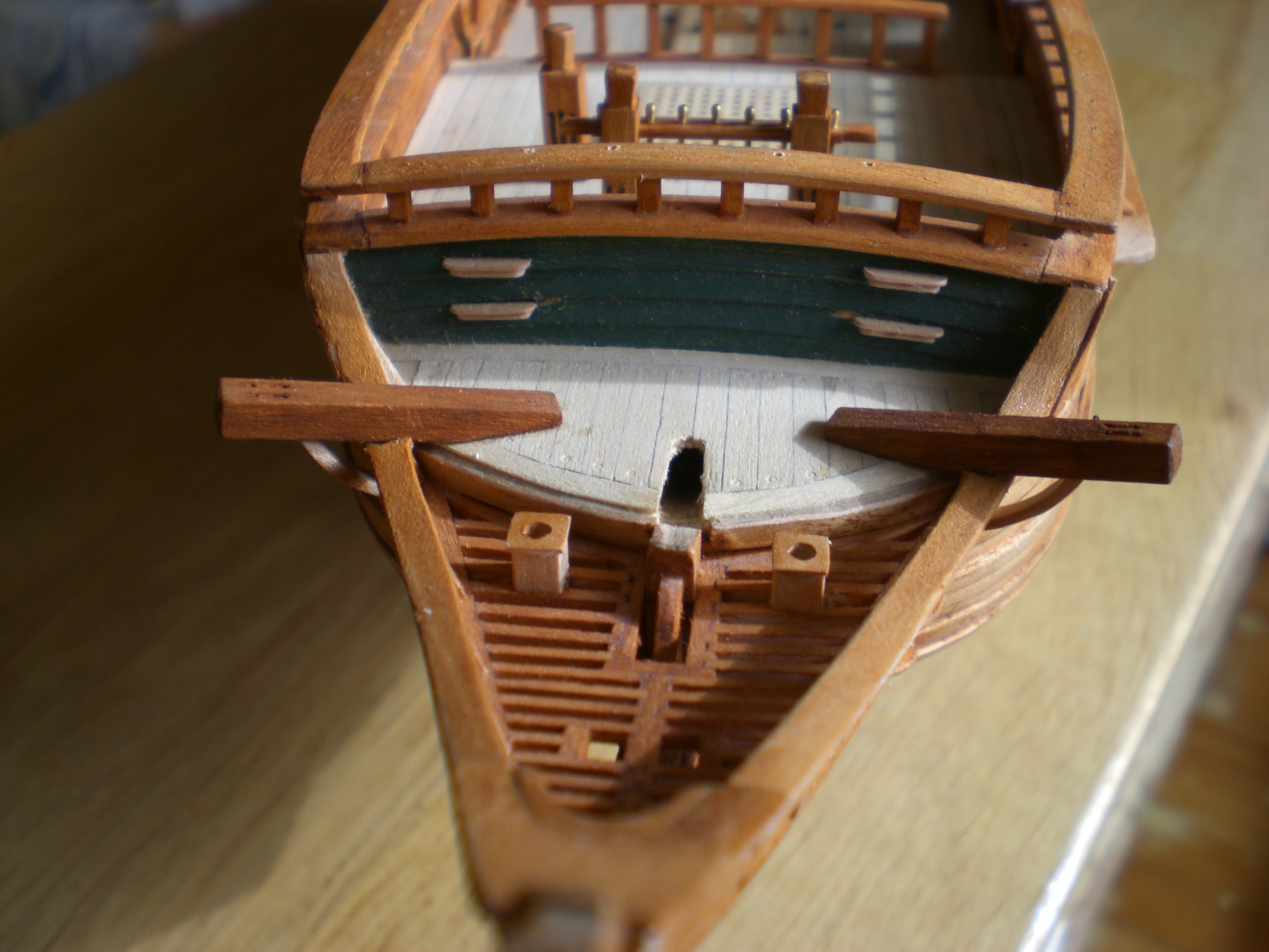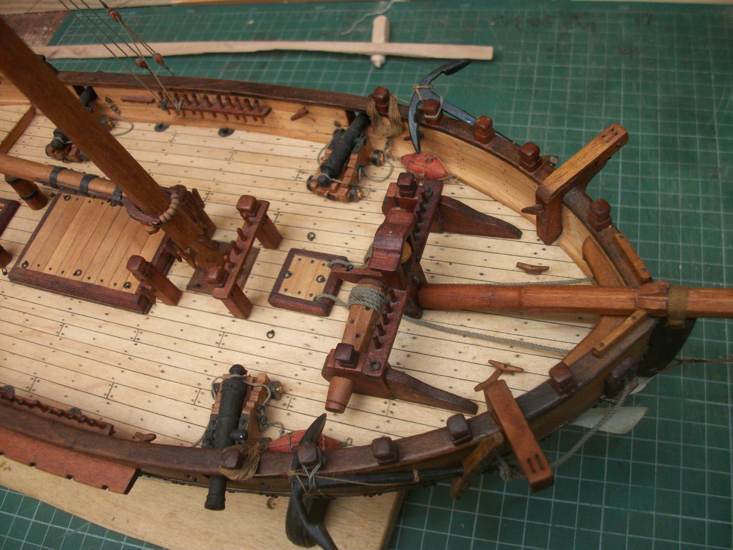Расположение кофель-нагельной планки фок-мачты типично для кораблей данного периода и диктуется наклоном фок-мачты вперёд. Места для работы со снастями там достаточно.