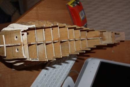 Только там меня смущает одно - как можно на картонный каркас обшивать дерево. Каркас он же основа всего -скелет корабля. Модель уже обрекает себя на недолговечность.