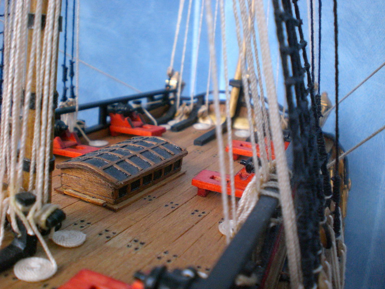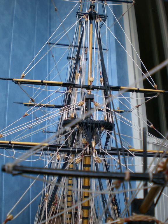 Разиеры такие:920х780х430мм.Насчет такелажа.Все делал по чертежам от Corel-а.Ничего не пропускал,все согласно схемам проводки такелажа предложенным Corel.Кое-что подсмотрел у Shipyard-а.Конечно если делать с парусами,то снастей прибавится.