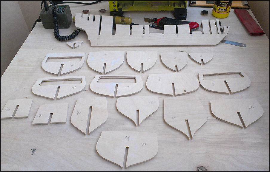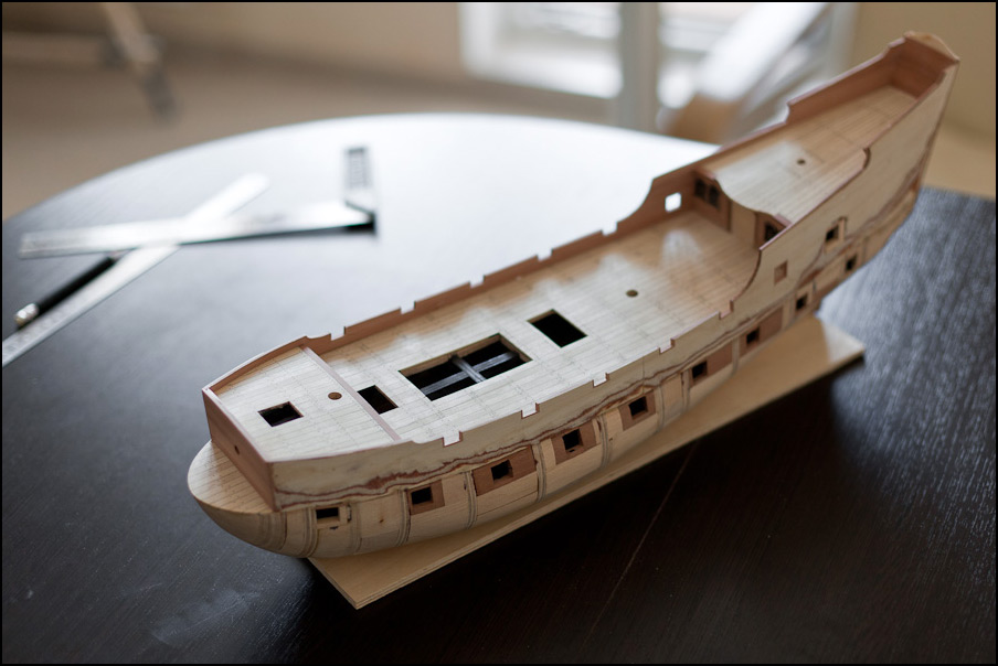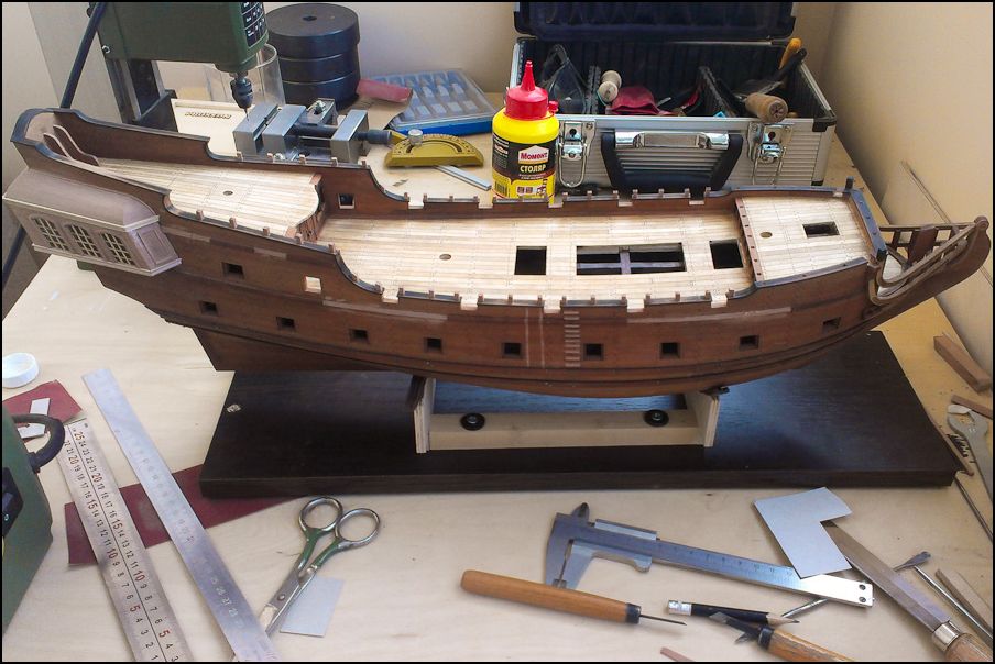 Строю "Черную жемчужину" по чертежам японца. 6 мм фанера, заполнение липа. Палуба - клен. Швы - калька, пропитанная тушью.