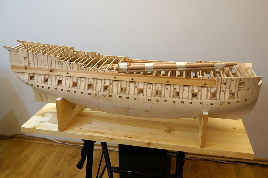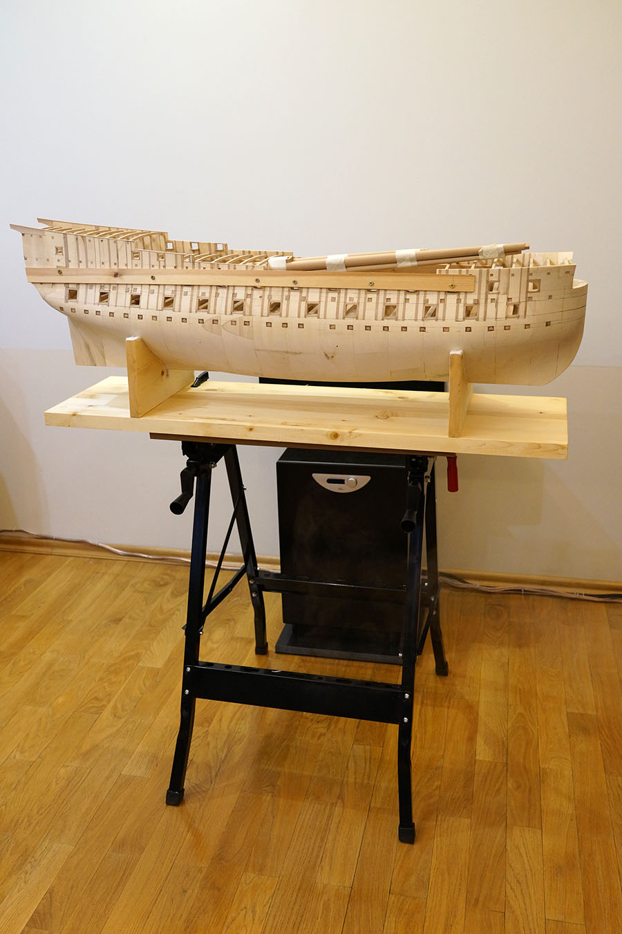 Приобрел по случаю корпус от Дмитрия Шевелева: L'Artésien Vaisseaux 64 canons в масштабе 1:48. Корпус огромный, в длину 1100 см и сделан отменно. Попал он ко мне через вторые руки, и ему уже около двух лет. Конечно, не обошлось без болячек. За время хранения на нем пошли микротрещины и лопнул транец. Но об это в следующем посте.