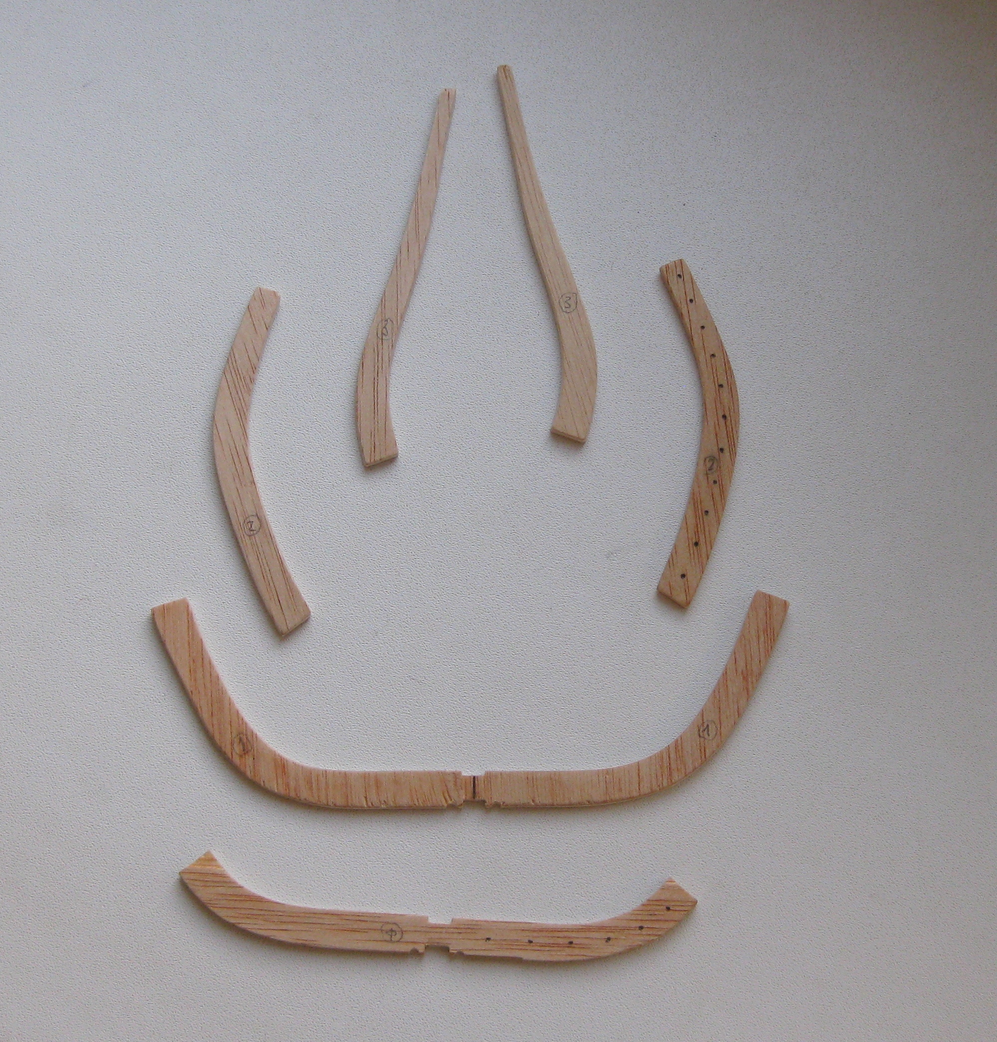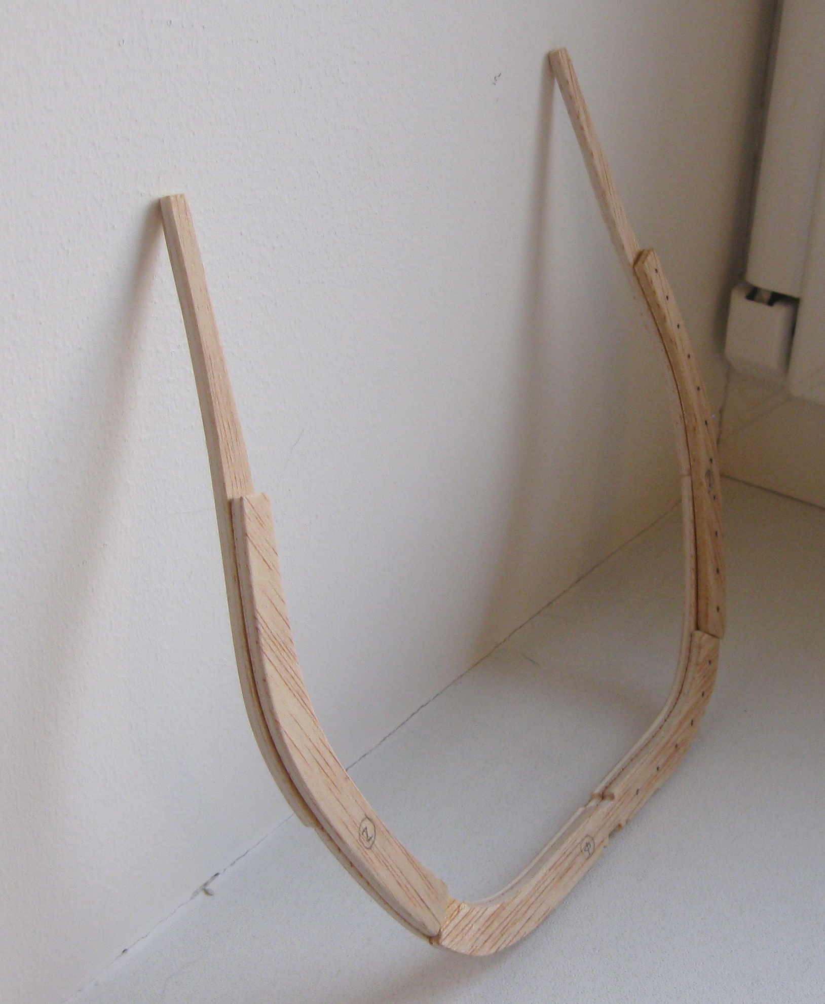 Далее шло изготовление элементов шпангоута из 4мм многослойной финской березовой фанеры. Всего было 9 шпангоутов. Каждый из двух частей.