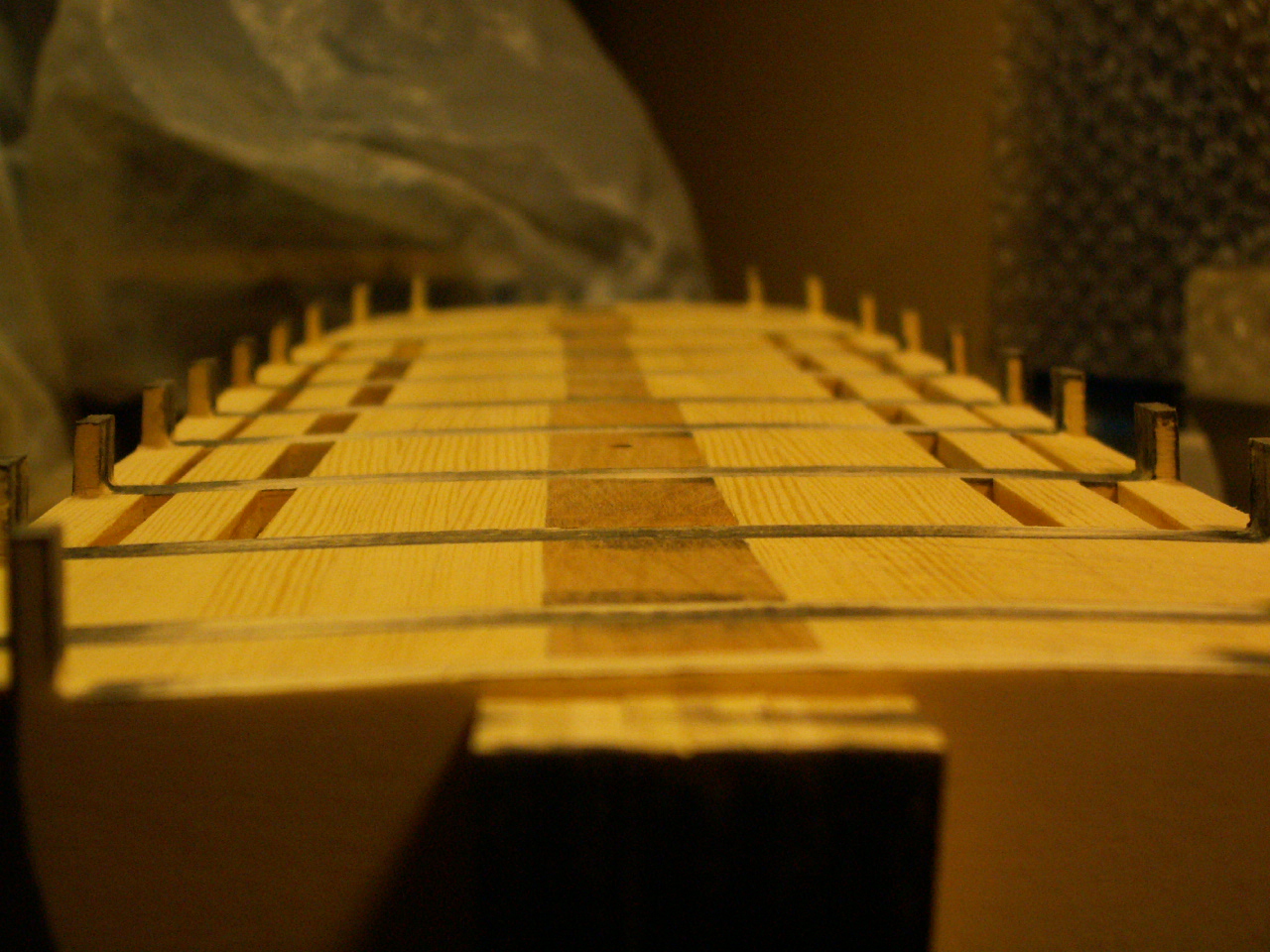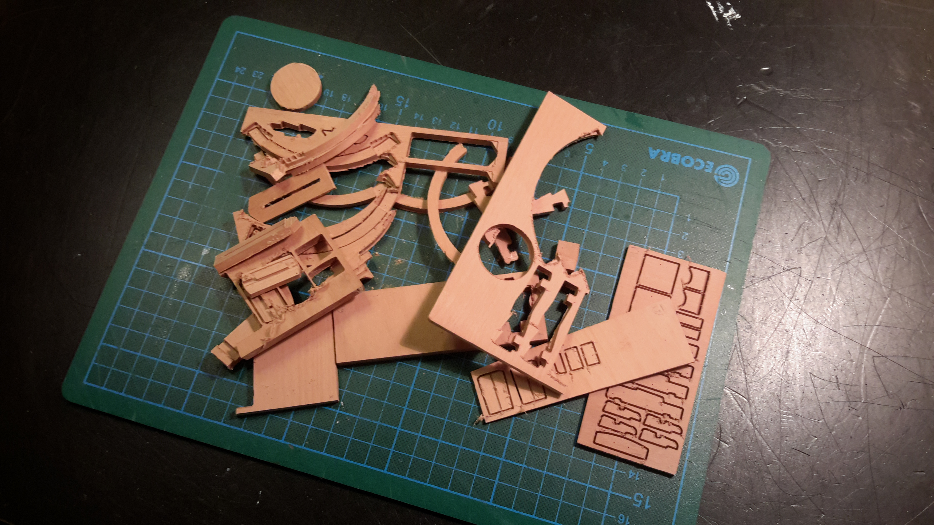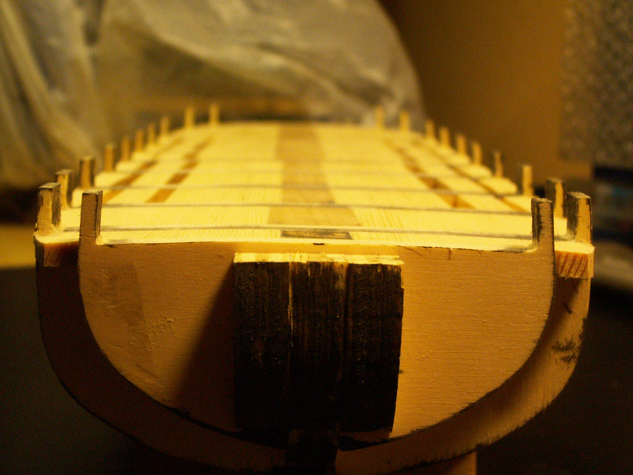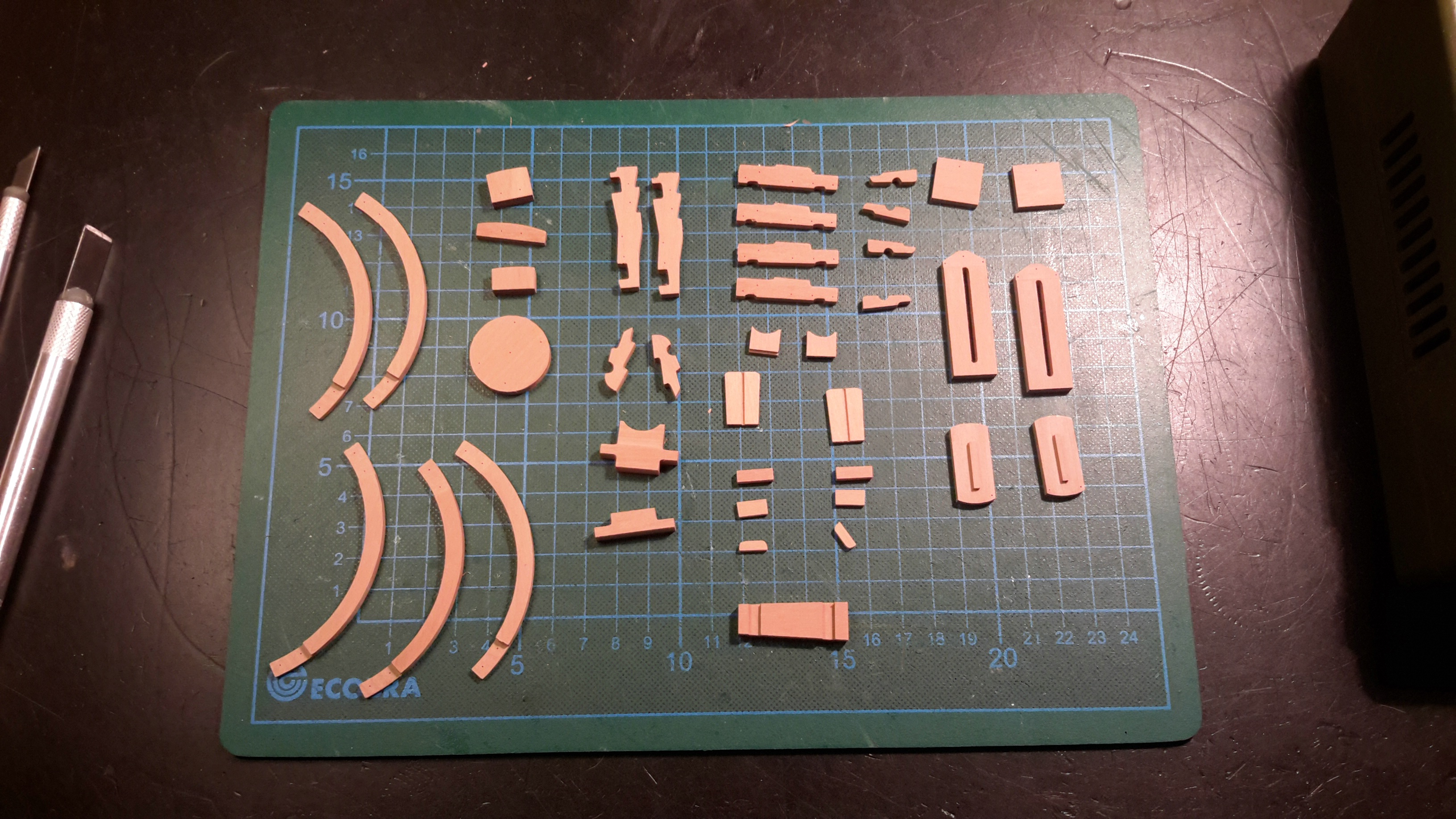 Чертежи прежде всего: главное орудие на поворотной платформе и реализация... деревянные детали после прорезки выглядят не очень... ... прошу прощения, но фотографии из этого периода перевалили за 2 мб, теперь их так просто не выложить. Пойду перекодировать.