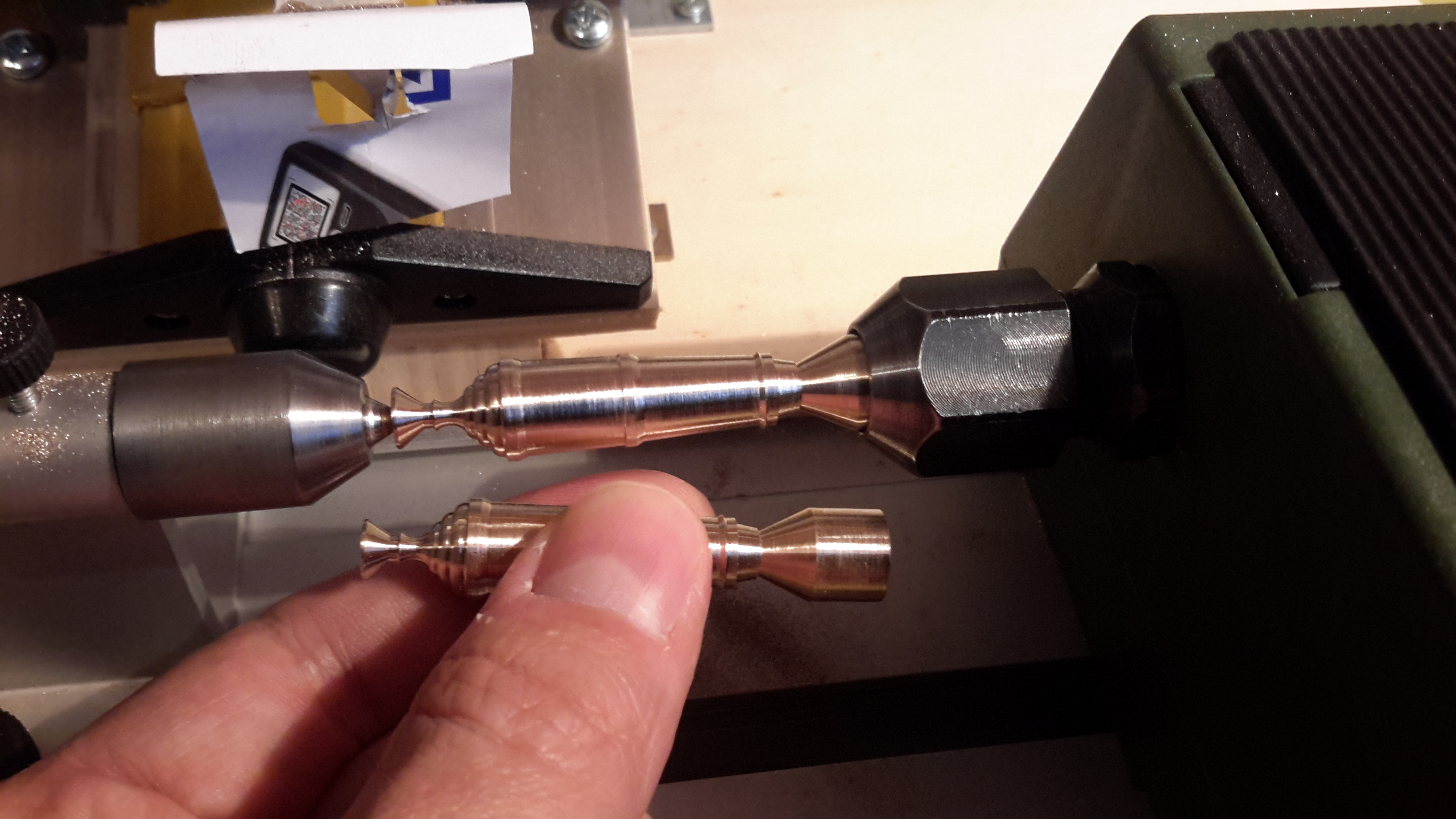 Обещаю показать все что сделано. Итак, корпусные работы, продолжение... С этого момента стал фотографировать другим аппаратом, стало немножечко получше с изображениями. а это пробничек главного орудия, под него даже переделал проксоновский токарничек под чпу.