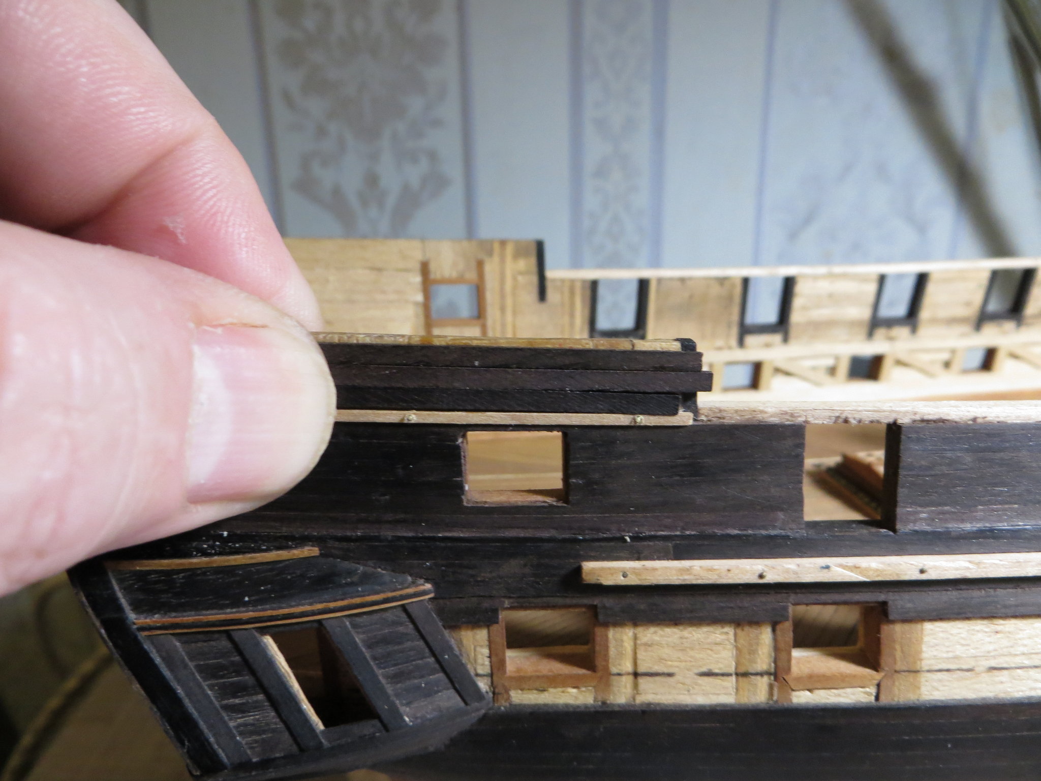 Примерил доску 1 мм толщиной. В паз будет вставлено дно кормовой коечной сетки.