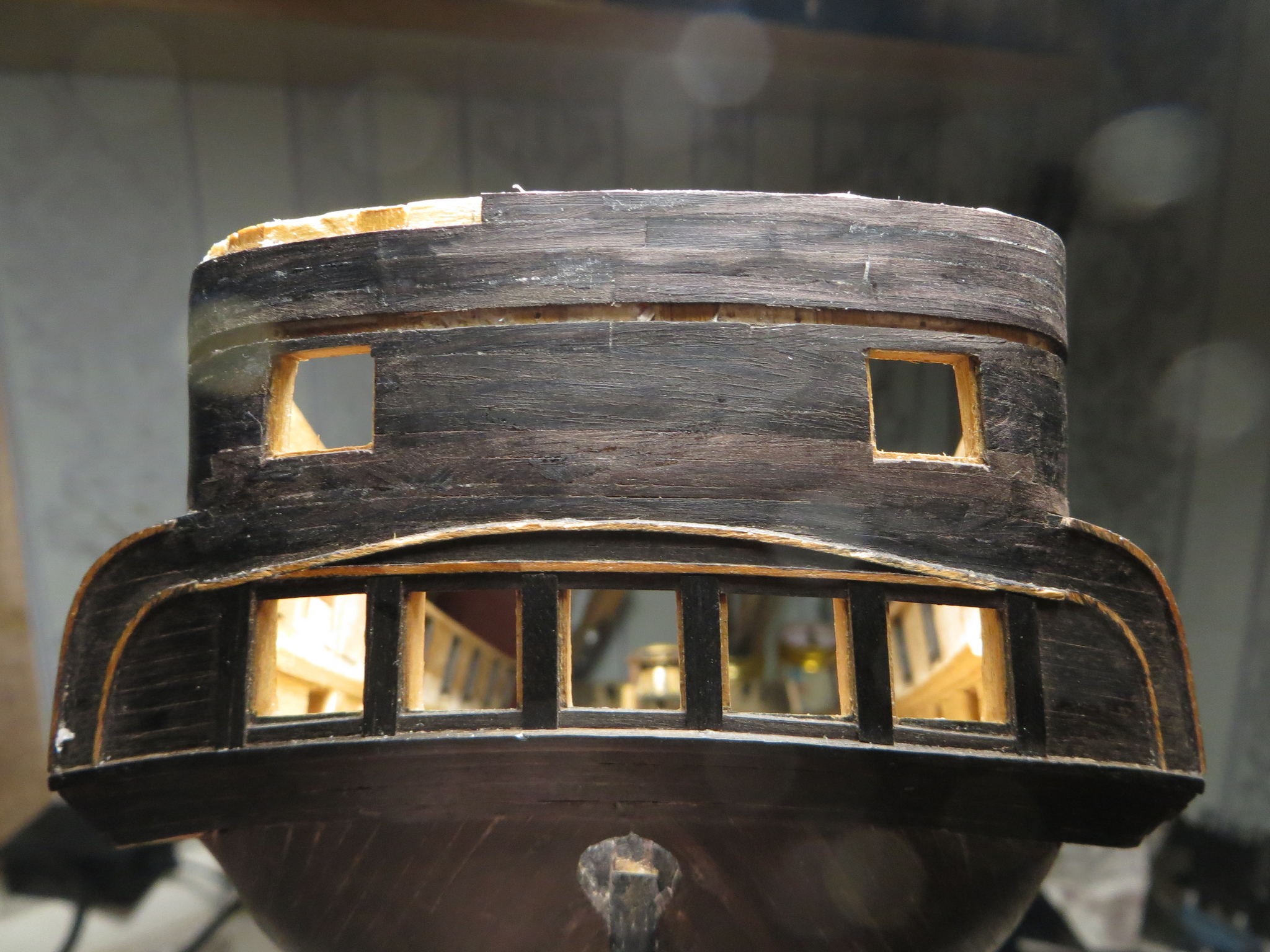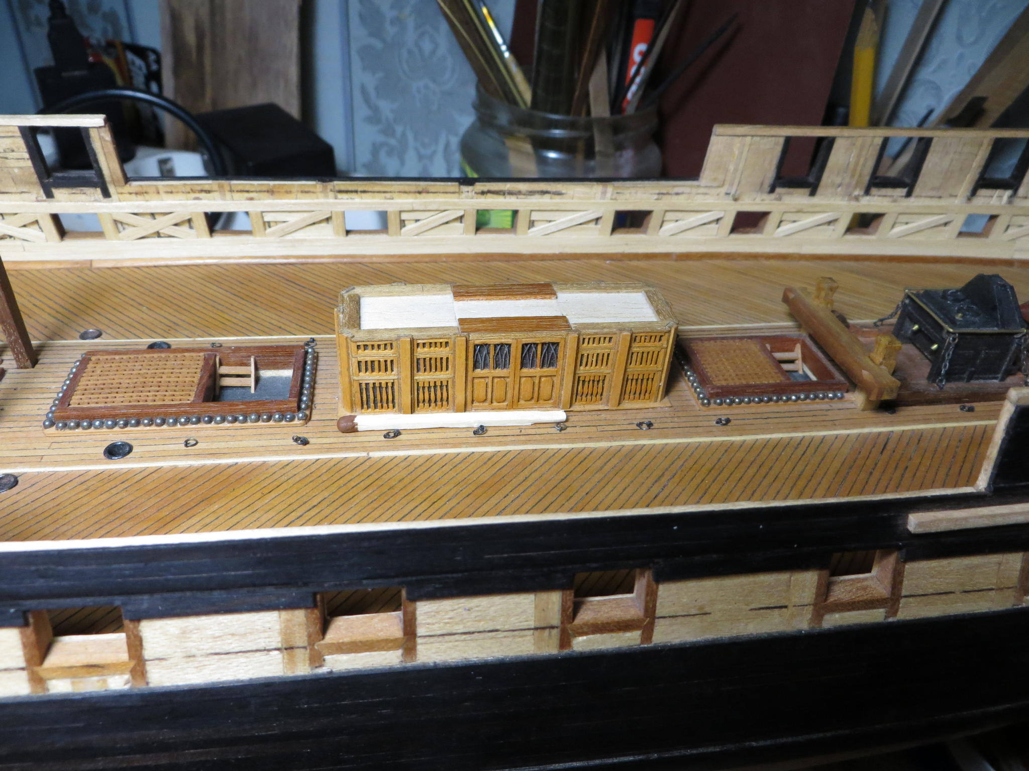Готовы только две шлюпки - большой барказ (гладкий) и ЯЛ6. Остальные "скорлупки" вырезаны, в разной степени готовности. Ждут своего часа.