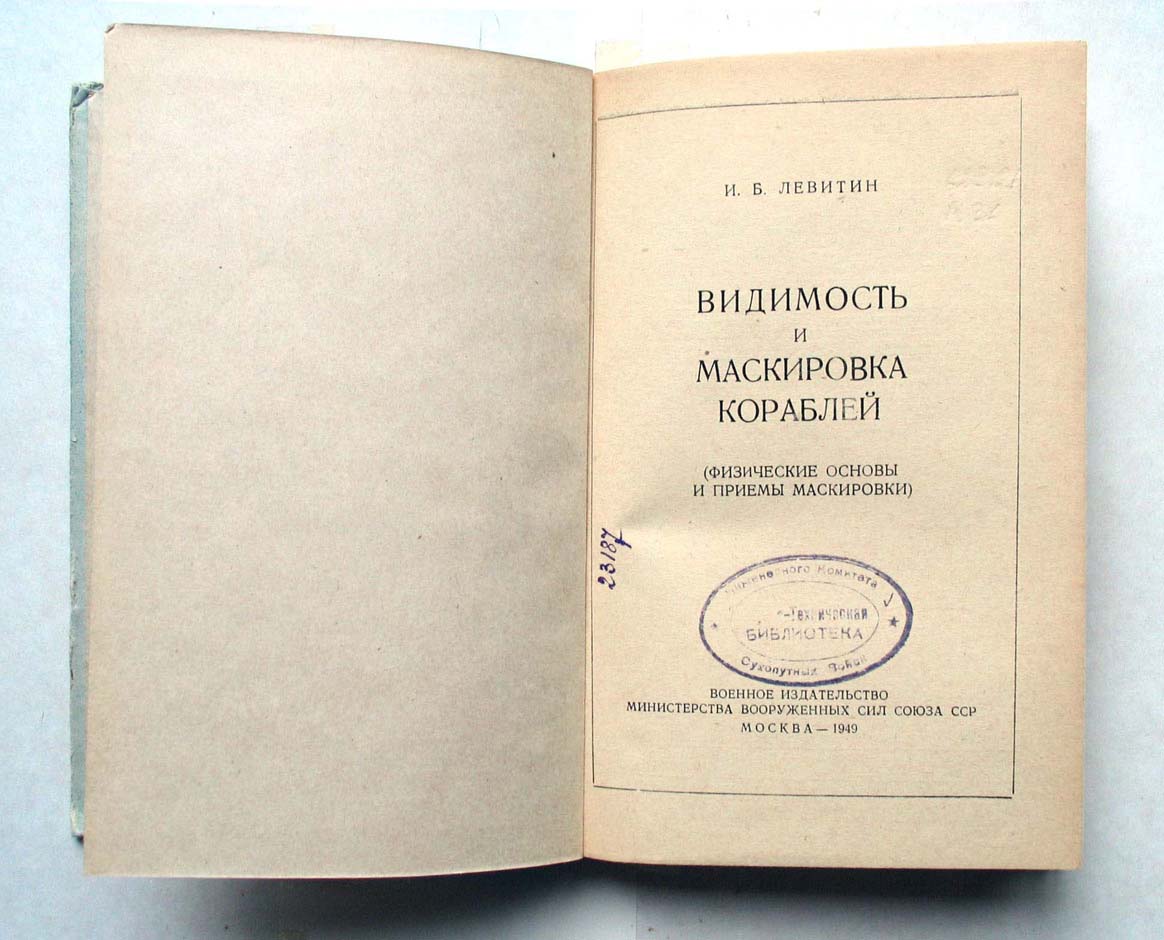9. Левитин И. "Видимость и маскировка кораблей. Физические основы и приемы маскировки." - 1949 г, 148 стр. М. Воениздат.