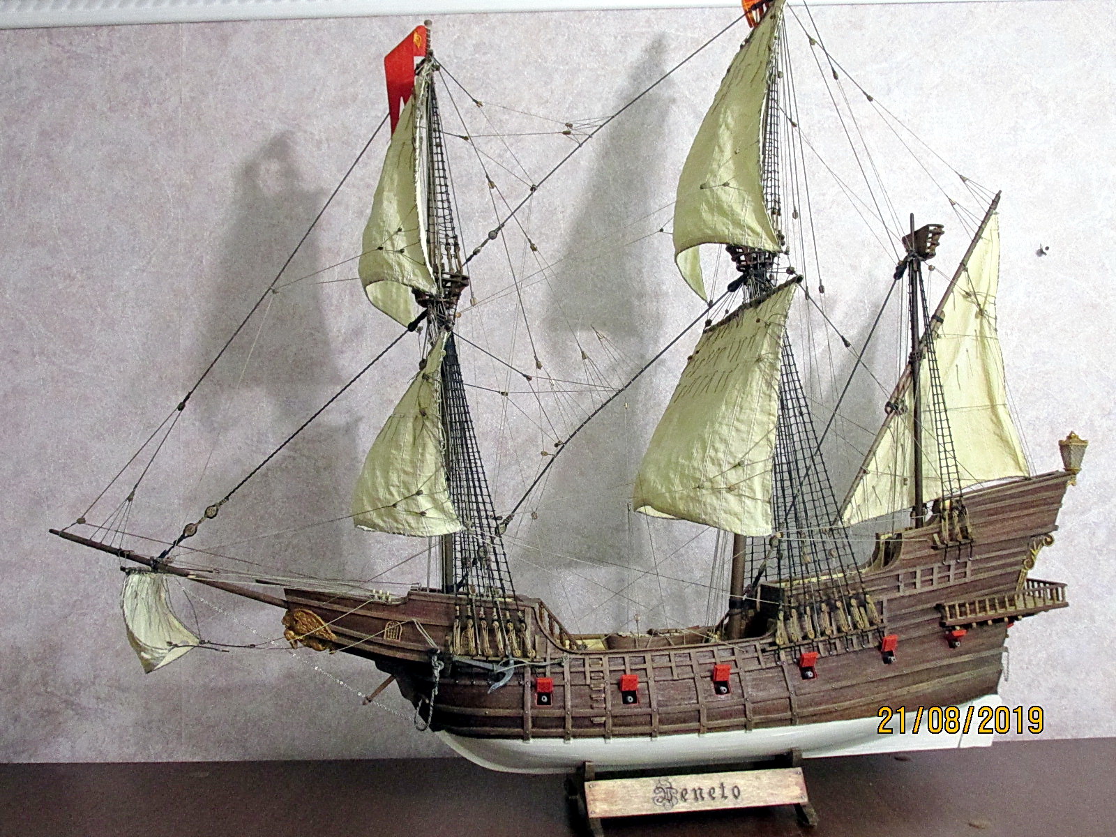 Продаю венецианский галеон Veneto за 120 000 руб, размеры д-78,ш-28,в-68, масштаб 1:70. Модель выполнена по мотивам итальянских чертежей от MOVO, т.к. возникали вопросы по сборке и функционалу данной модели, то пришлось кое где подрегулировать и поменять.