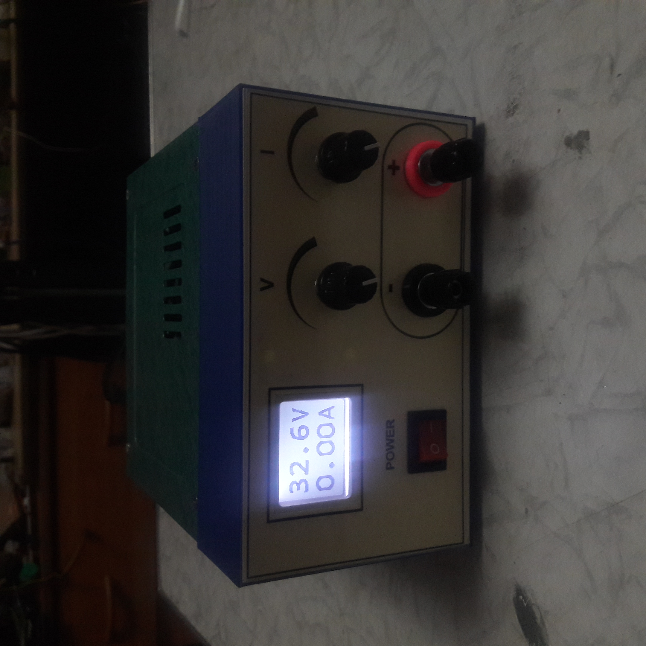 Вариант 20 вольт 20 ампер, с наклонной панелью , регуляторы грубо точно.