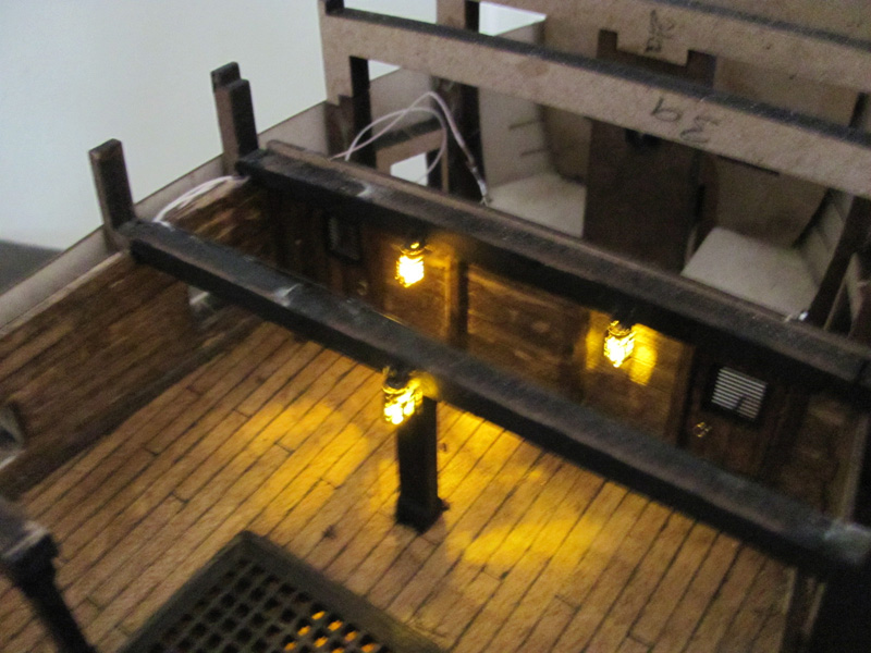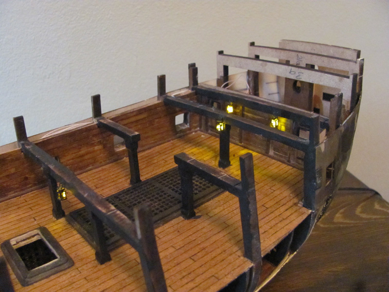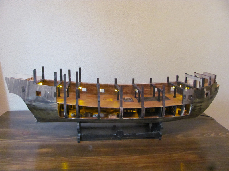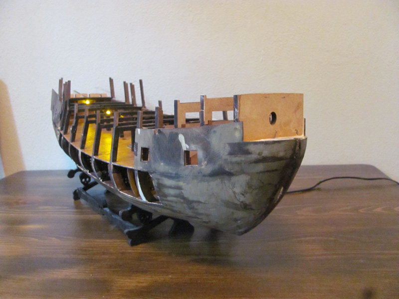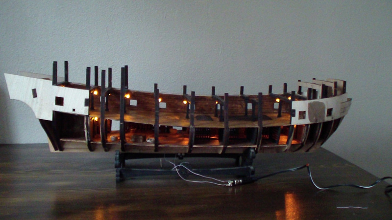 Сделал освещение нижней палубы на жёлтых светодиодах. ОТЛИЧНО получилось! Приклеил орудийную палубу. Фоток пока нет, фотоаппарат и видеокамера ухали вместе с моей второй половиной. Но скоро вернутся и вы увидите результаты моей работы.