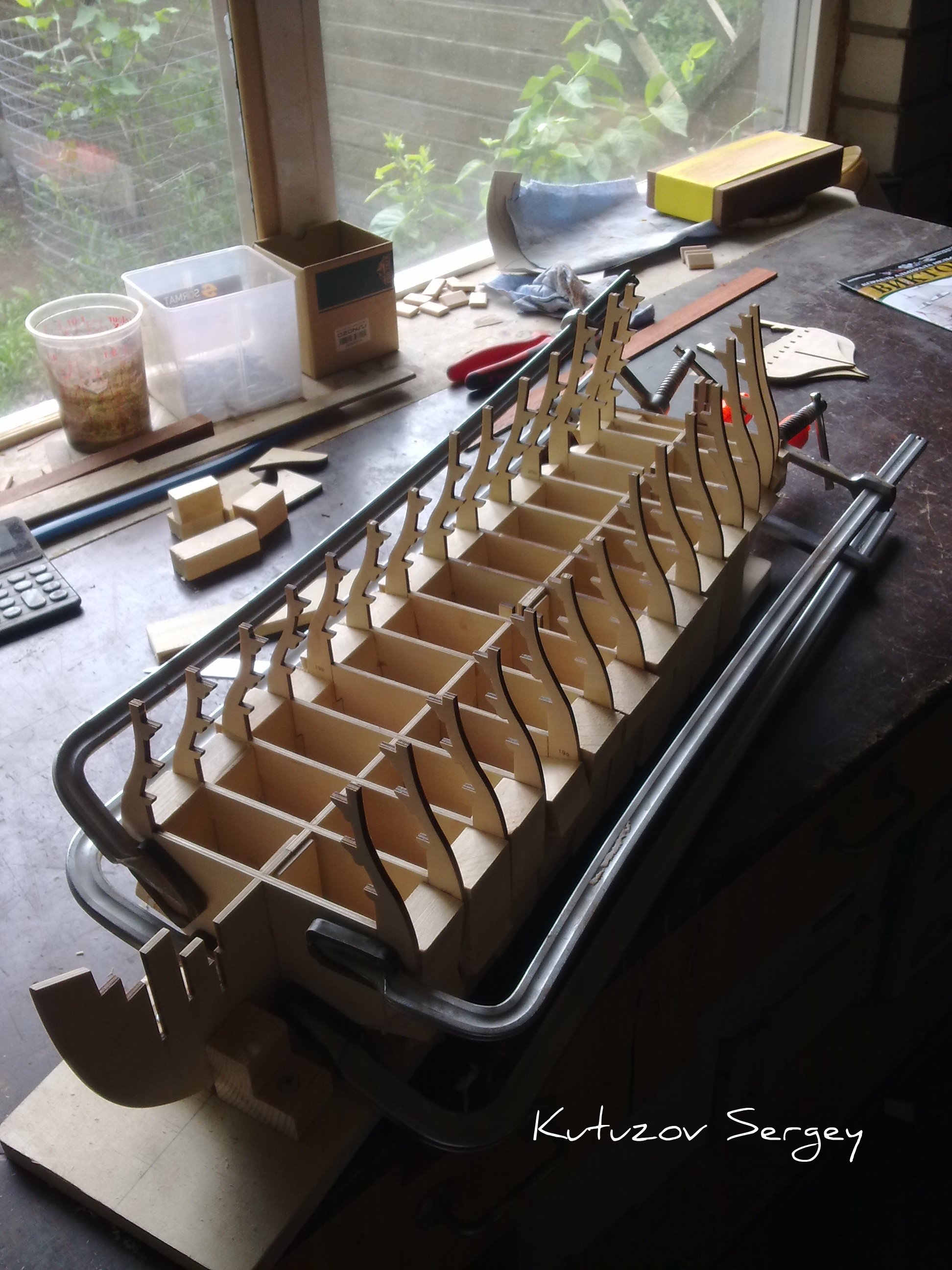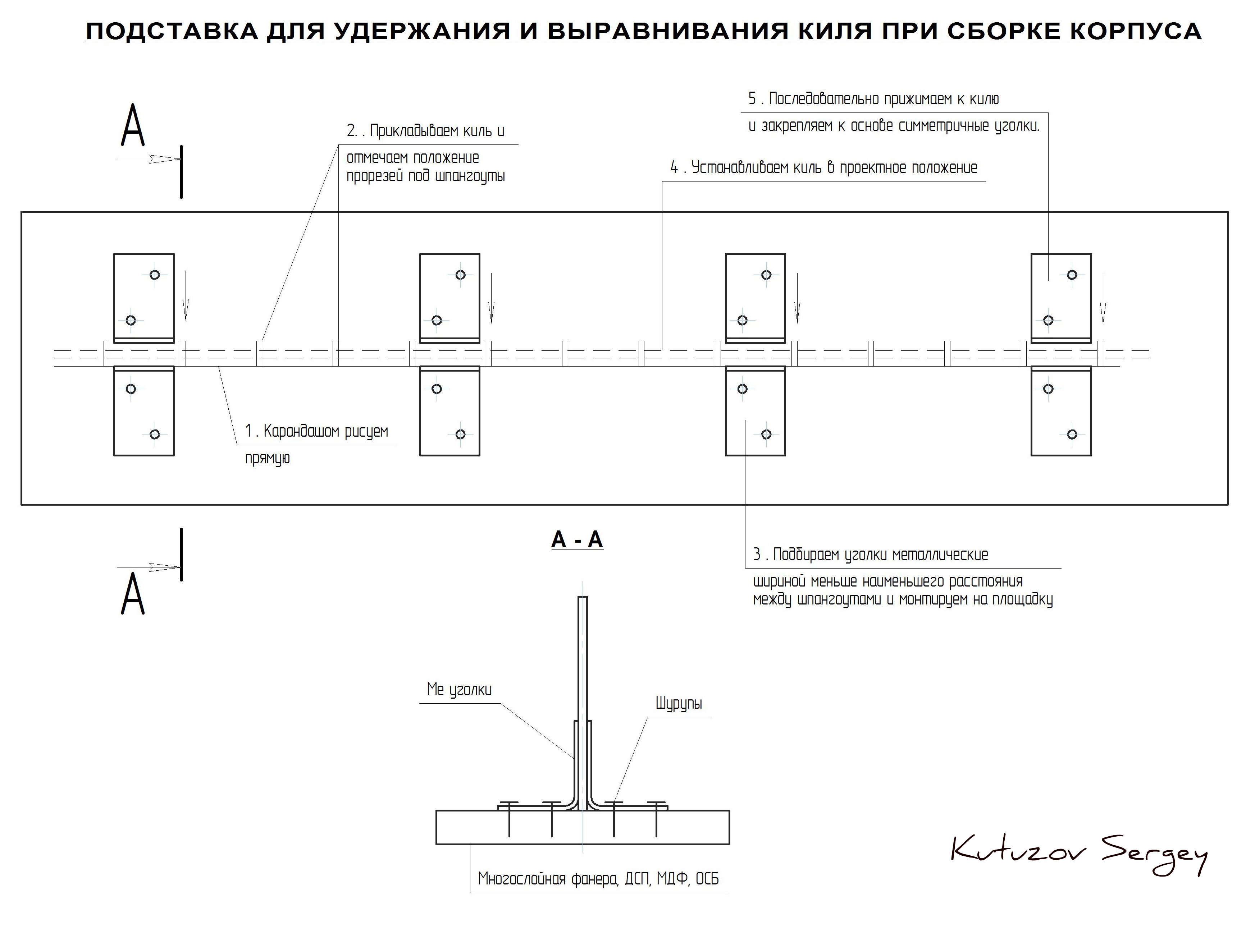 По вопросу о подставке, на которой стоял киль в тот момент, когда я набирал шпангоуты. Рассказываю по просьбе участников форума.