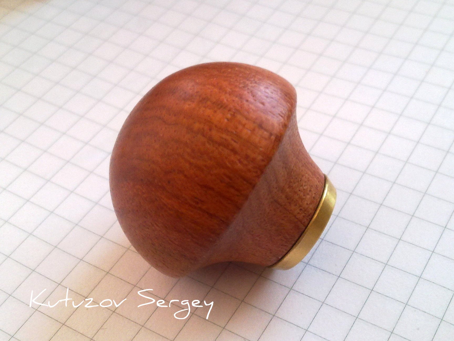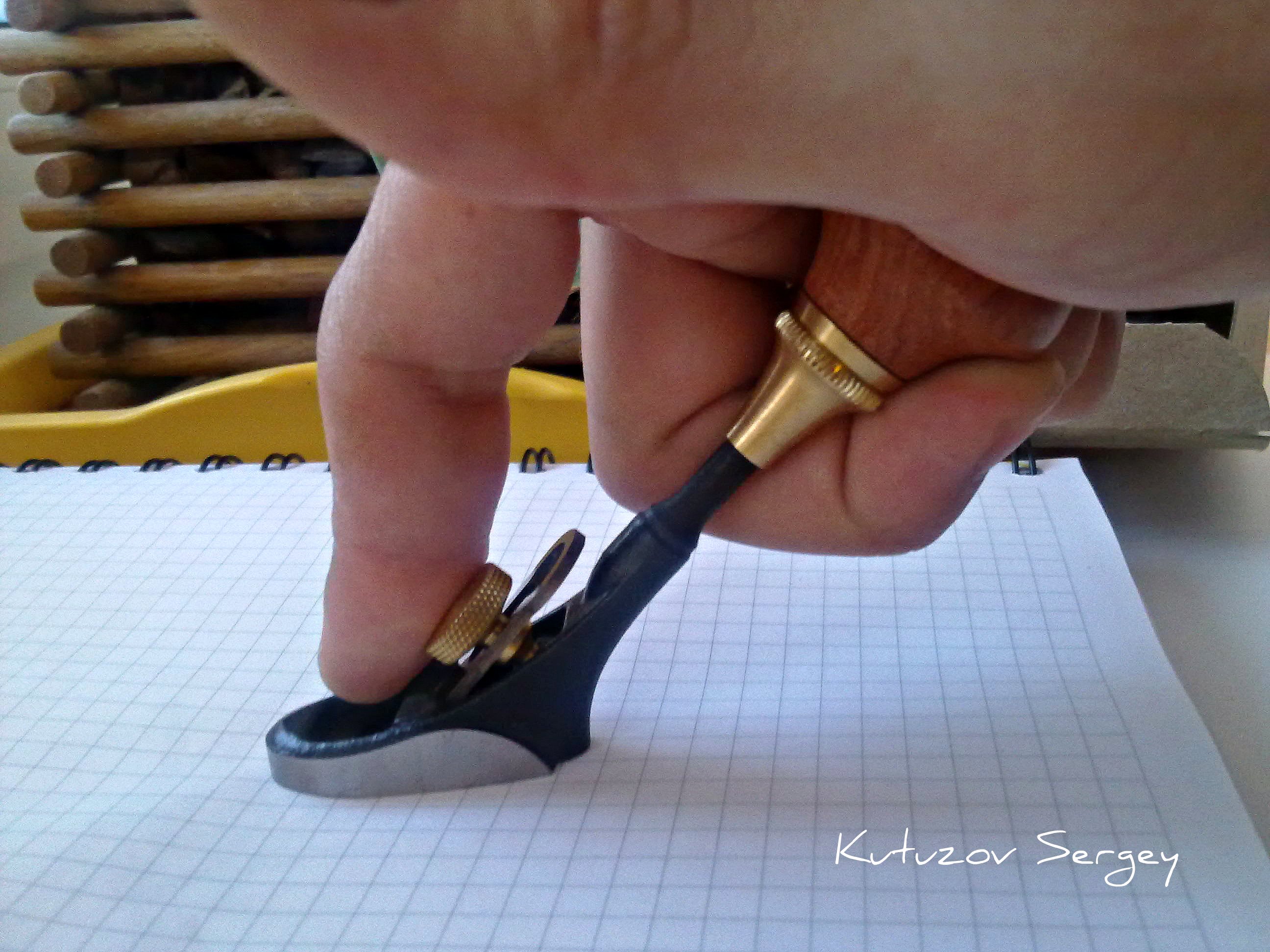 Ручка регулируется по высоте и фиксируется контрогайкой. Элементы с резьбой выполнены из латуни: Подошва с ножом: Рукоять выполнена из древесины бубинга: Этот рубаночек плоский. В таком же исполнении есть рубаночки: вогнутый внутрь по ширине, выгнутый по ширине, выгнутый по ширине и по длине. После пробы работы этим рубанком планирую приобрести выгнутый по ширине еще. Работать им на удивление удобно. Несмотря на то, что подошва имеет малую длину, при строгании он не скачет. Вот такой интересный рубаночек.
