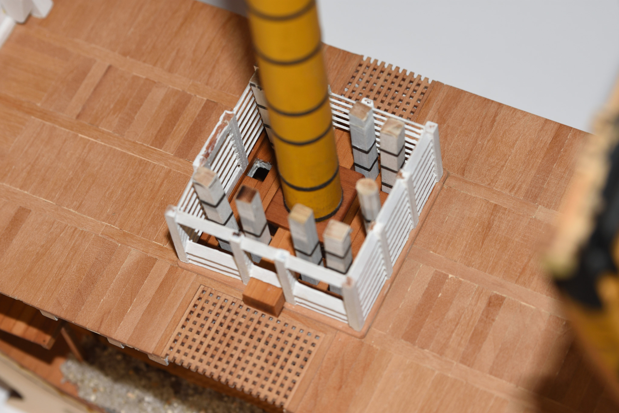 Как я уже выше говорил, сначала в планах было сделать "Виктори" времен Трафальгара, а для того отказаться от железных книц и сделать вместо них деревянные - но источников не нашел, а ведь наверняка потребовалось бы переделывать еще и набор палуб. Посему махнул рукой и стал делать по "Анатомии".