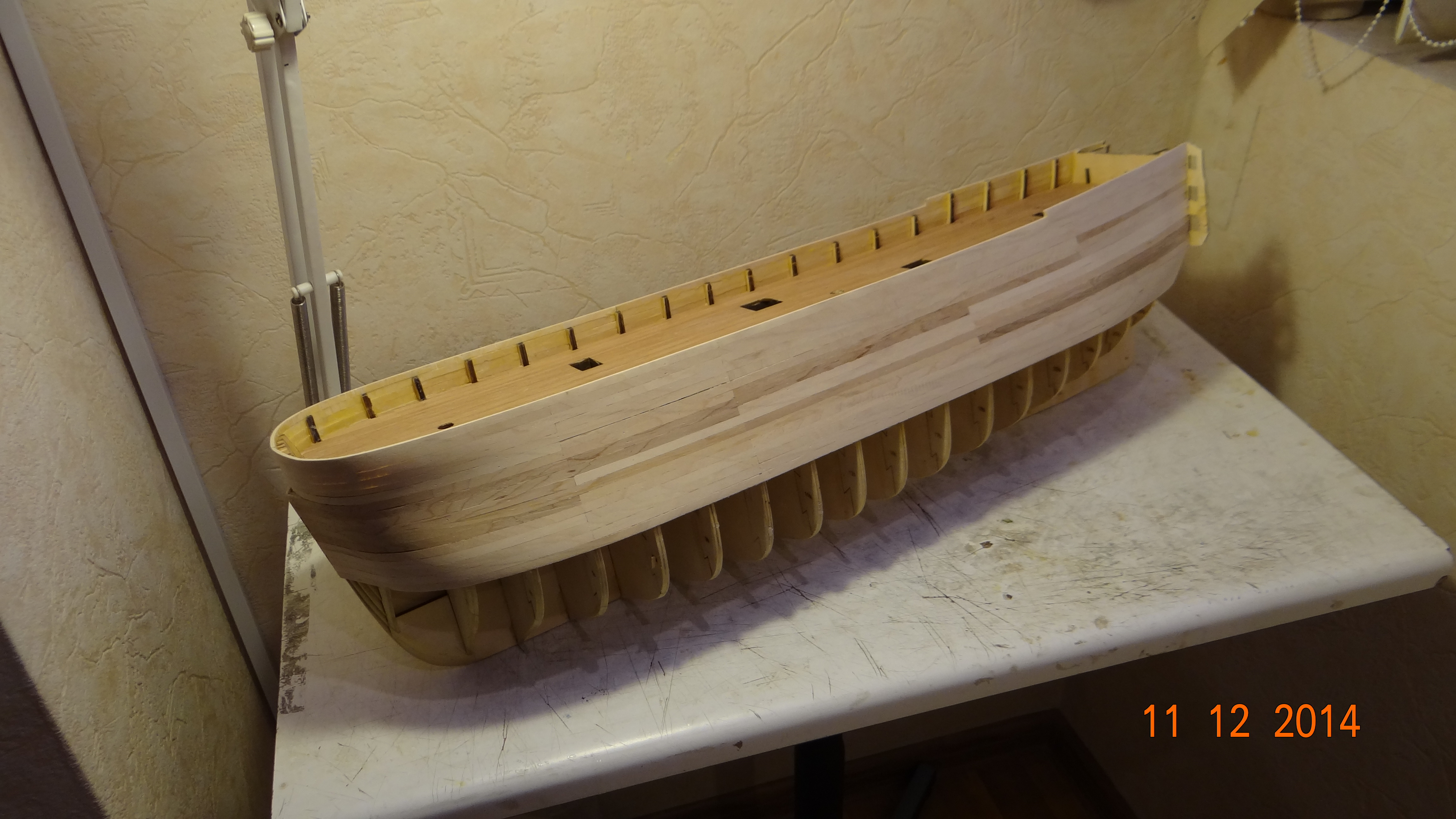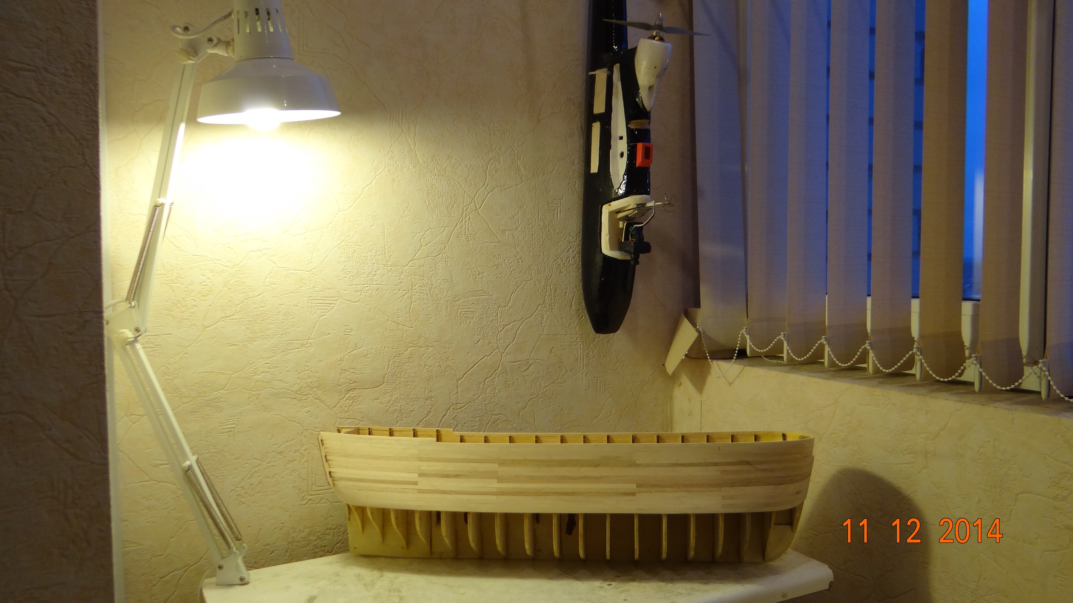 чего то давно ни кто ничего не пишет, и не показывает, а я с началом зимы отвез самолеты в деревню, а скелет кораблика с полки достал, ну и за 4ре вечера зашил верх корпуса, накосячил конечно как всегда
