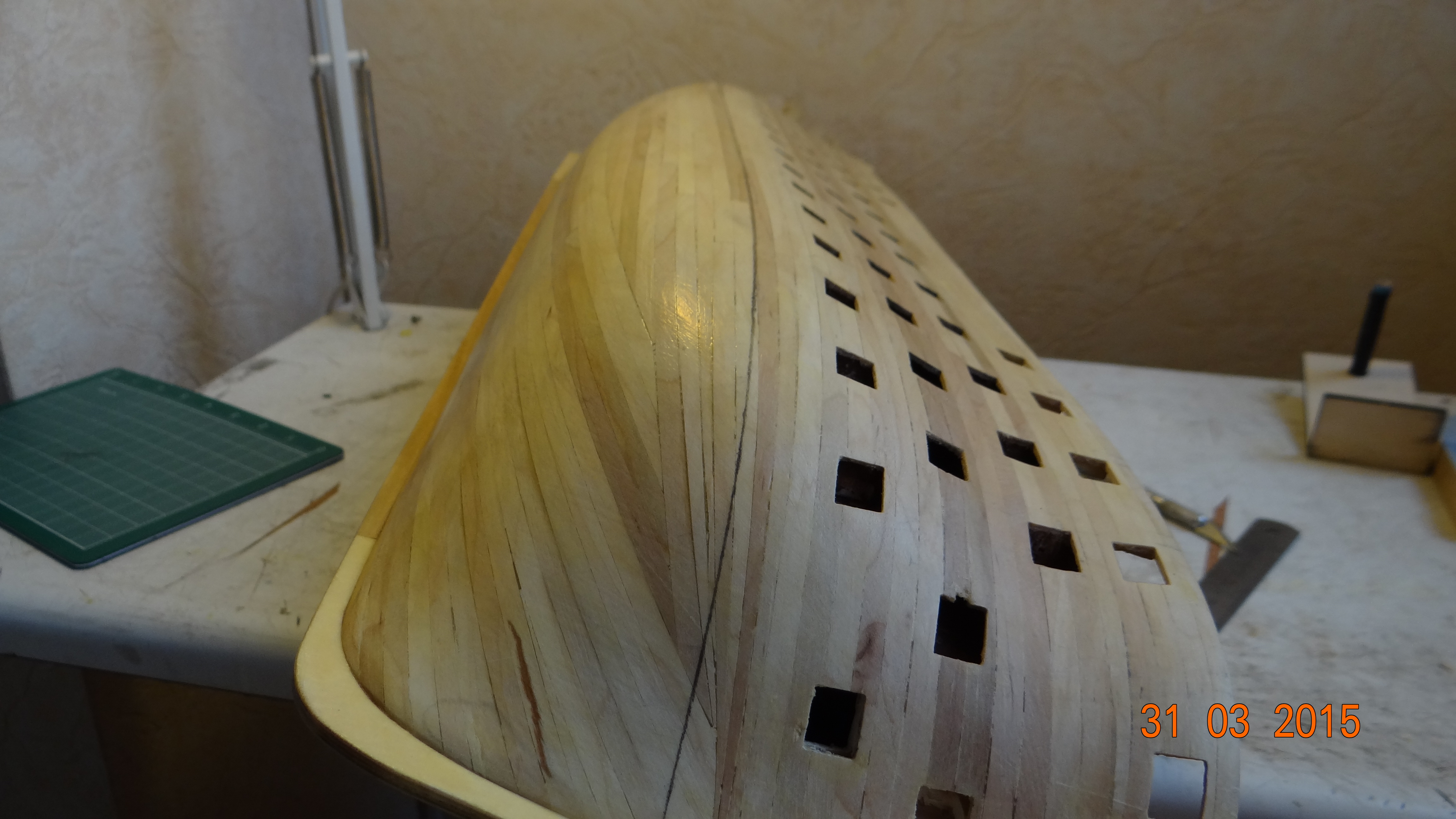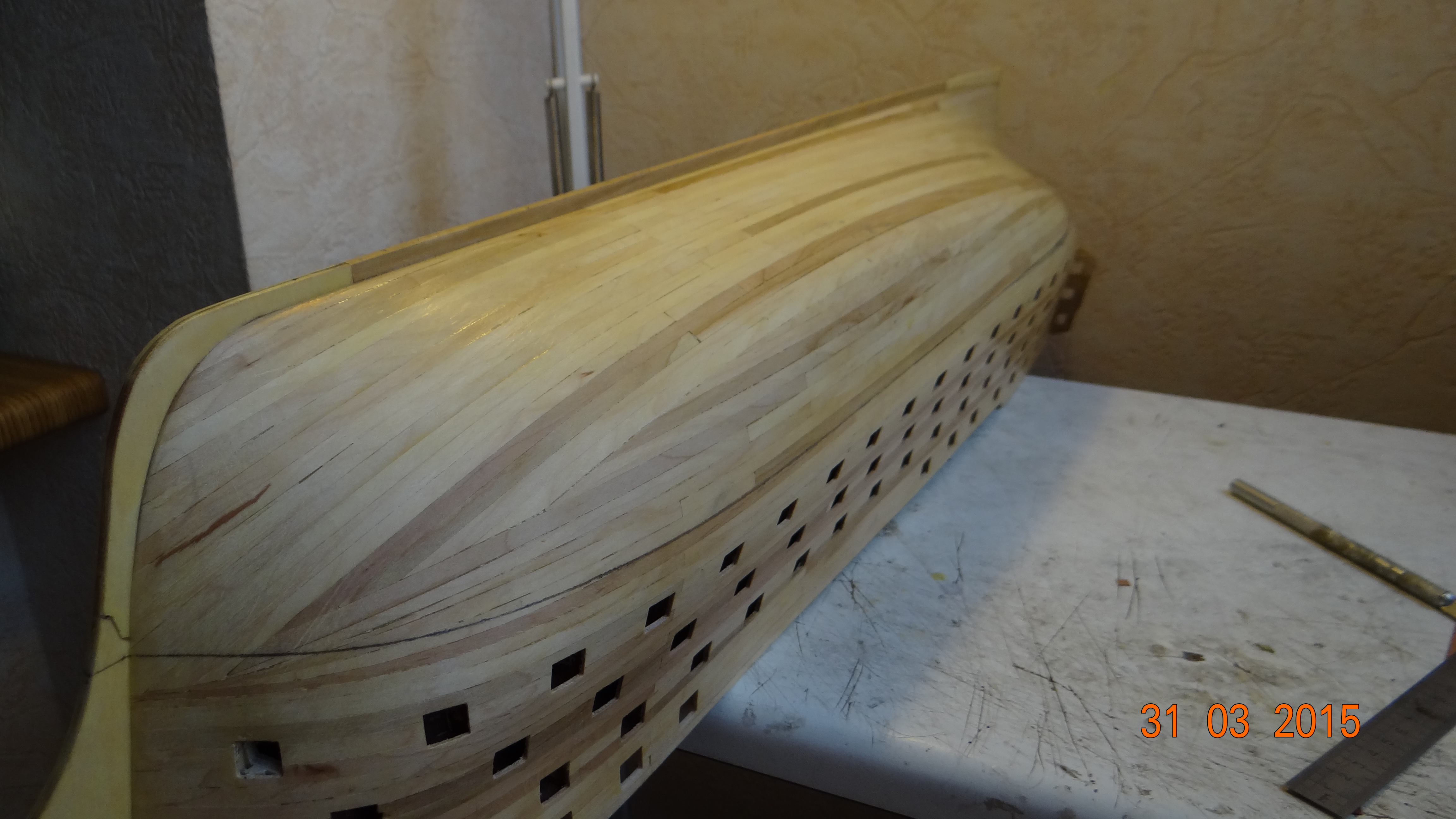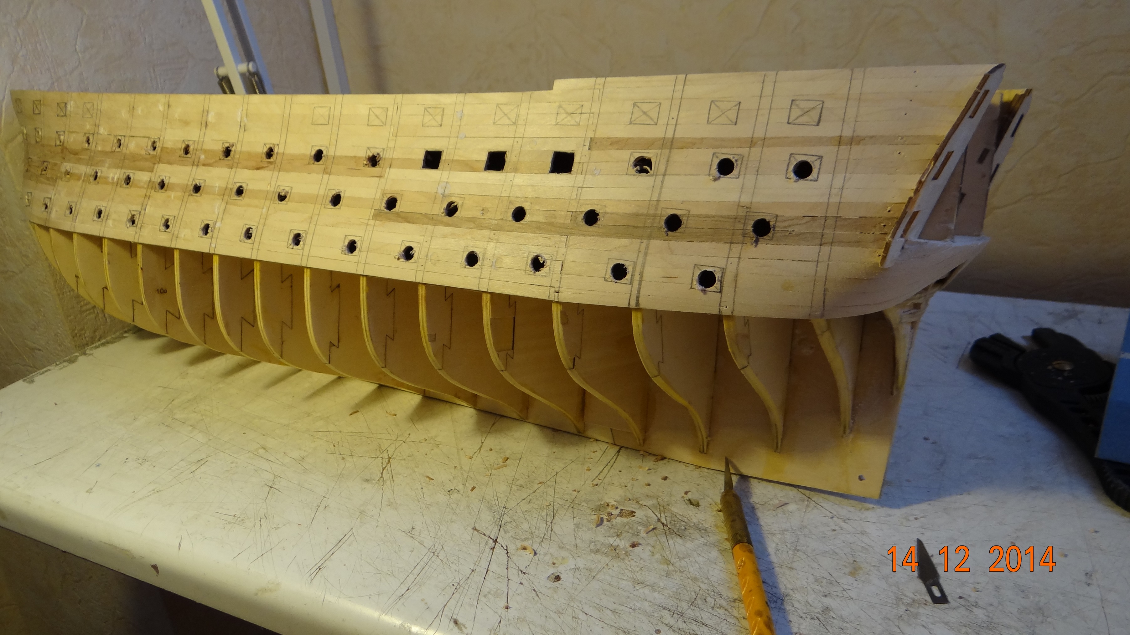 Хорошо что пока не прорезаны порты орудий главной палубы! До прорезки разберитесь с портом лев и пр бортов перед шкафутом! Ежели делать по журнальному, то они получаются под трапом! Что есть не дело! На лицо нестыковка! По моему мнению порты просятся в нос миллиметров на 5-7! Обратите на это внимание.