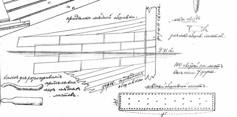 Дмитрий, начинать обшивать, наверное, нужно с кормы? Исходя из логики, чтобы шов шел "по воде", а не "против воды". Были ли какие-то правила для медной обшивки?Dmitry Shevelev писал(а):Начинаю делать медную обшивку. Делать буду внахлест