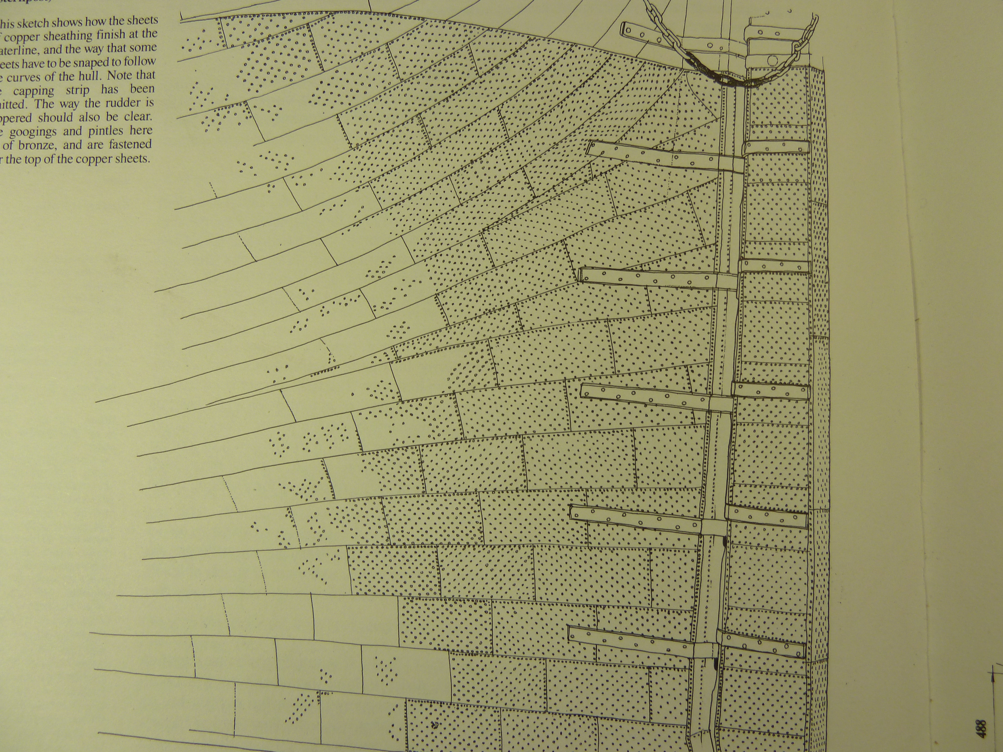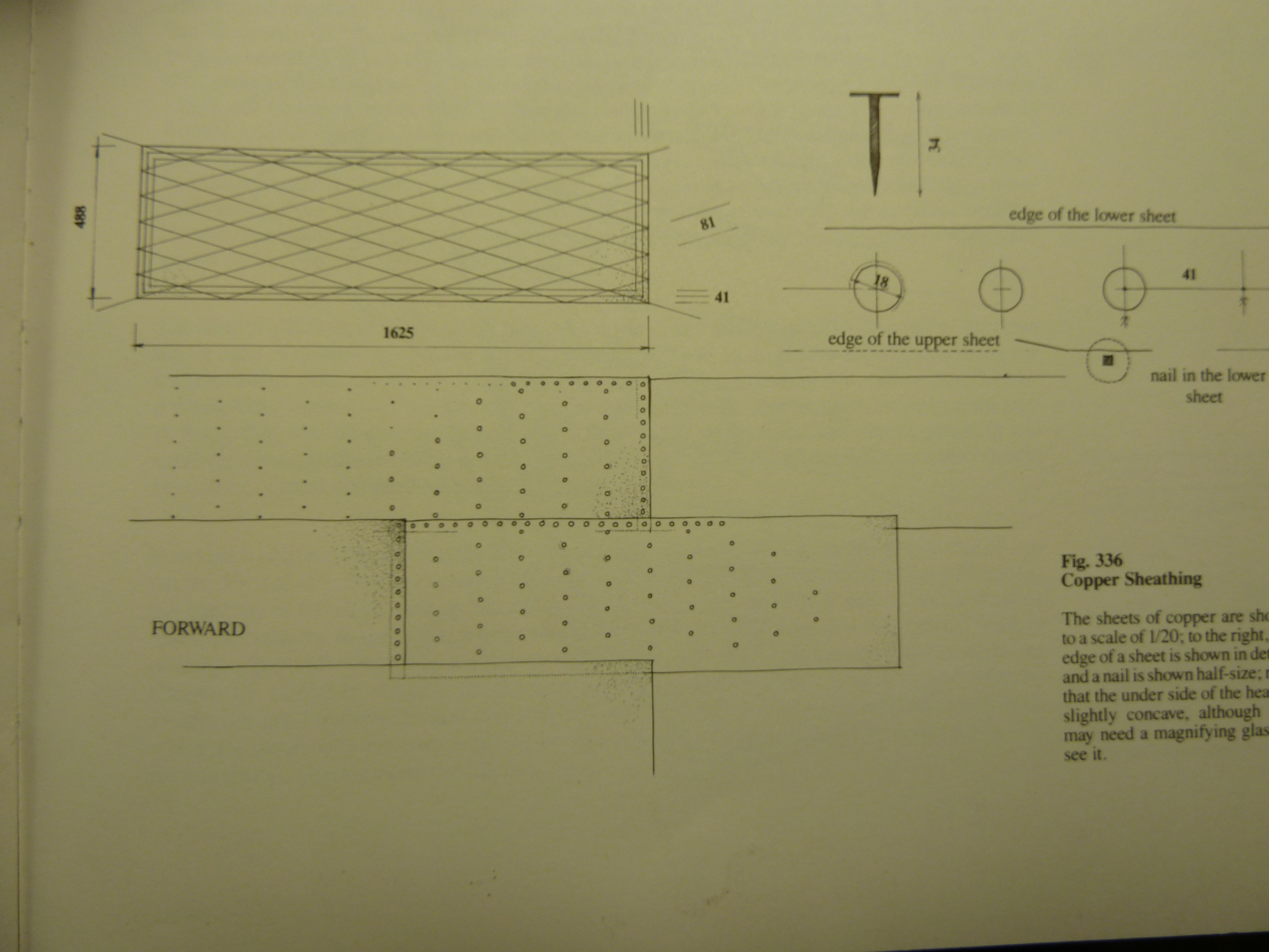 Именно такие и были. Чисто теоретически. От кормы снизу к носу вверх. На практике работал несколько бригад, а не по одной на борт.Igorvik писал(а): Были ли какие-то правила для медной обшивки?