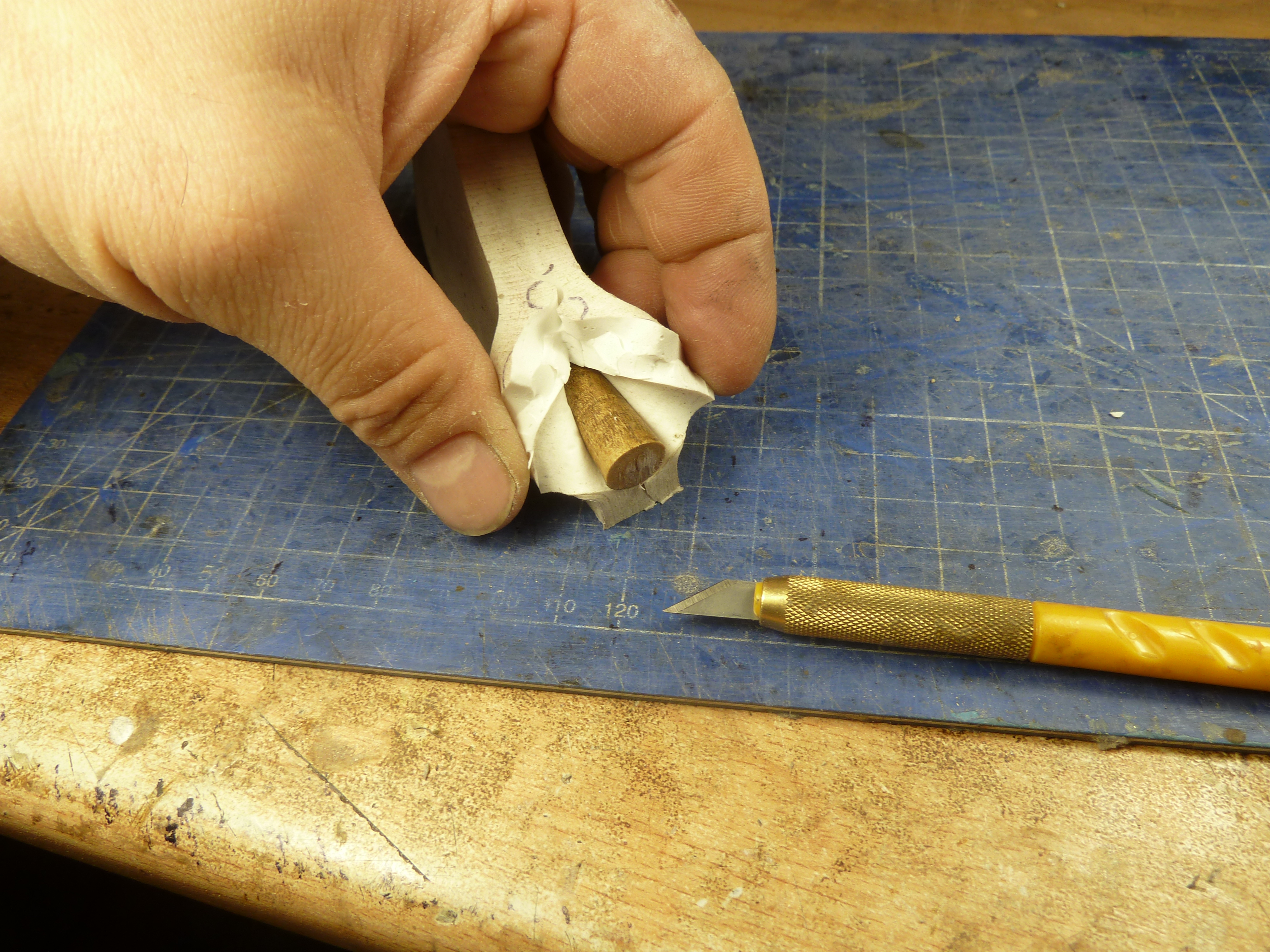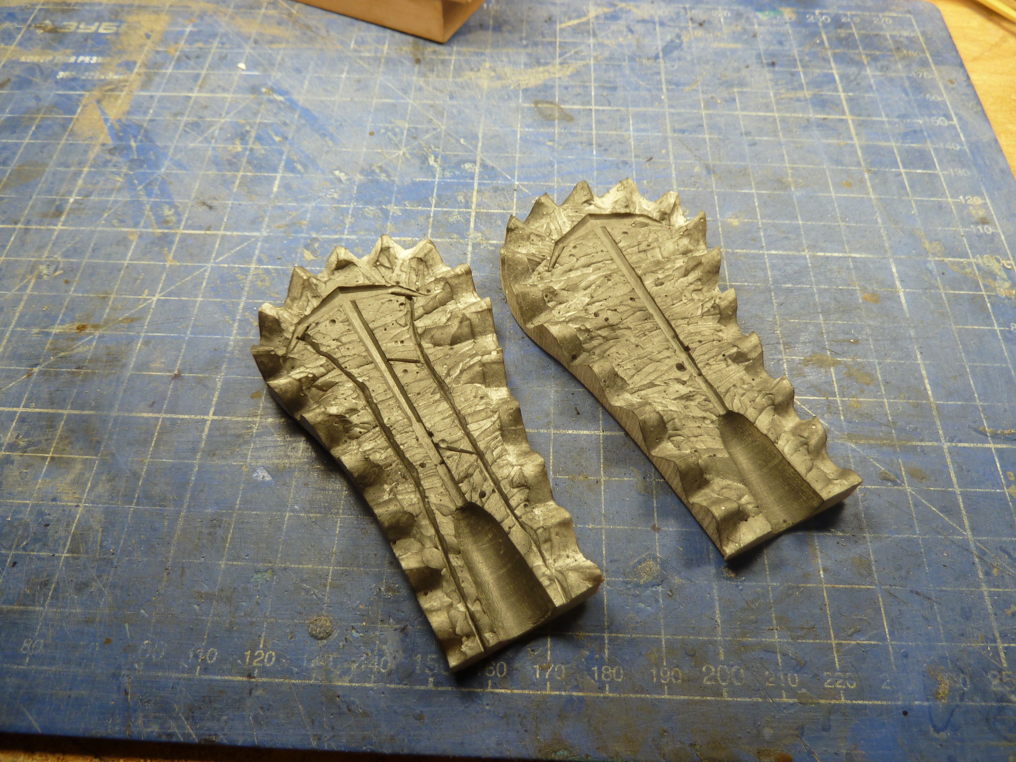 Когда форма готова промываю уайт спиритом остатки смазки и присыпаю тертым графитом от мягкого карандаша.