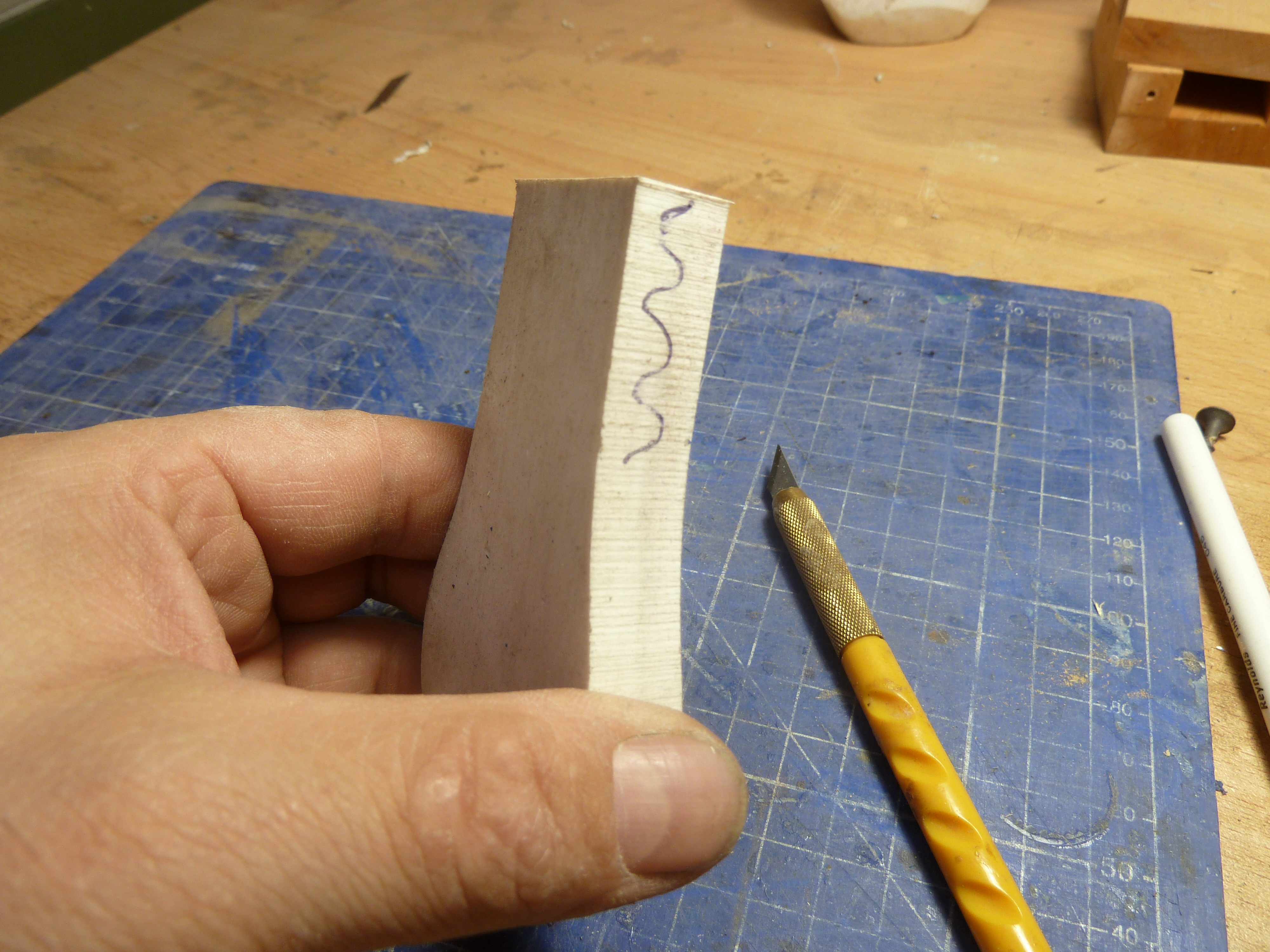 Наступил самый ответственный этап - разрезка формы. Профессионалы советуют это делать специальным серповидным лезвием но практика показывает что справляется и обычный модельный нож. Лезвие при этом беру новое, острое. Для фиксации по периметру на глубину 4 - 6 мм делаю рез змейкой, затем начиная от прибыли , поочередно с обоих сторон разрезаю форму, стараясь что бы разрез приходился примерно на центр модели. Теперь необходимо сделать оставшуюся часть литниковой системы - выпоры. Они нужны для выхода воздуха из низа формы, в противном случае обязательно будут непроливы. Просто прорезаю треугольные канавки ножом на одной из половинок формы. Выпоры следует сделать и в концах лап якоря. Я просверлил отверстия Ф 0,5 мм наружу формы и прорезал от них канавки выводящие воздух к верху формы рядом с прибылью